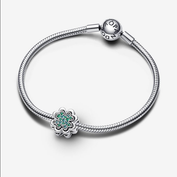 Atrae el doble de buena suerte con el Charm Divisible Trébol de Cuatro Hojas. Este charm, en plata de primera ley, con forma de trébol de cuatro hojas esconde más de lo que se ve a simple vista, ya que su trébol interior se puede separar de su carcasa exterior y se puede usar como un charm completamente independiente, lo que lo convierte en la joya ideal para regalar a alguien y desearle suerte. El trébol interior se ha decorado con el grabado «True friends are a rare gift» (Los amigos de verdad son un regalo excepcional) en el reverso y el grabado «Lucky to have you» (Afortunado de tenerte) en el lateral, hojas en forma de corazón y cristales artificiales en dos tonos de verde. Este charm de Pandora Moments está lleno de positividad y simboliza la esperanza, el amor y la buena suerte, ¡y quién no quiere todo eso!