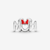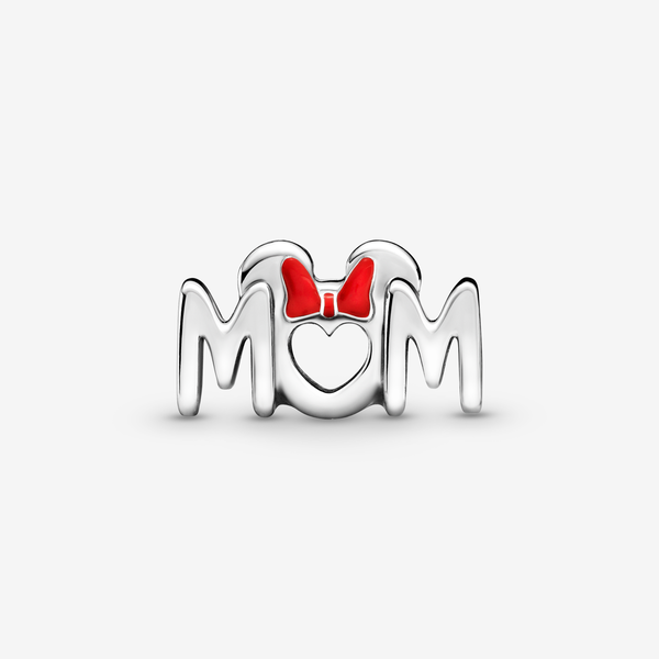 Charm Mamá y Lazo de Minnie Mouse de Disney. Acabado a mano en plata de primera ley, este diseño incluye la inscripción “Mum” (Mamá, en español) con una parte delantera y trasera simétrica. Minnie Mouse se presenta con las orejas pulidas y el lazo decorado con esmalte de color rojo aplicado a mano por encima de la “U.” Este charm incluye además el logotipo de Disney y de Pandora en ambos extremos. Si a tu madre le encanta todo lo de Disney, regálale este pieza para hacer aún más feliz. Debido a la longitud de este charm, no se moverá al llevarlo en el Colgante O de Pandora o en el Colgante O de Corazón en tamaños pequeño y mediano.