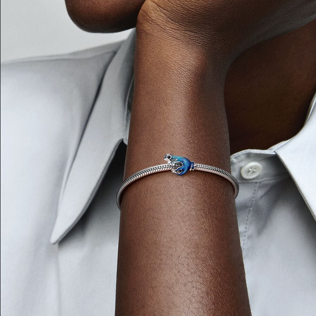 Conoce la última adición a tu estilo inspirado en la naturaleza, el Charm Geco Azul Metálico. Inspirado en el vivo movimiento de un geco real, este precioso charm se enrolla alrededor de tu pulsera o portador de charms. Un patrón de escamas realista se muestra a través del esmalte transparente en tonos azules y turquesas, creando un efecto metalizado. El charm del geco es ligeramente más pequeño que la mayoría de charms, lo que aportará variación al combinarlo con otros charms. Llévalo como símbolo de positividad, resiliencia y renovación.