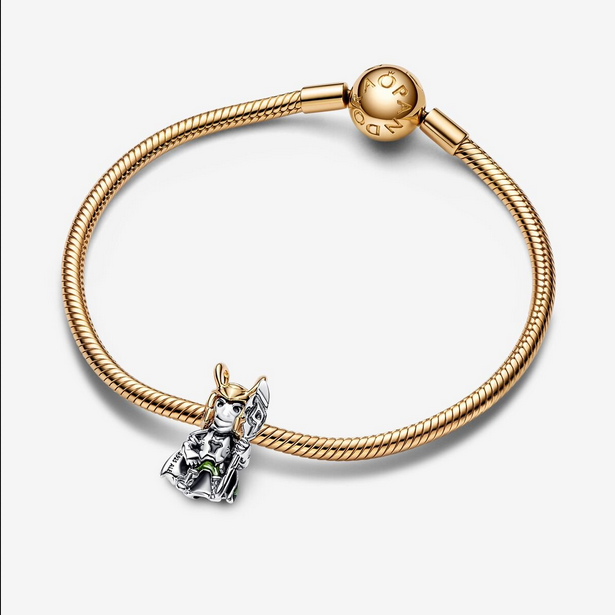Añade un toque agudo a tu look con el Charm Loki de Marvel. Si Loki es tu personaje favorito, ¡estás de suerte! Nuestro charm en plata de primera ley muestra al Dios de las Travesuras luciendo su icónico uniforme y detalles realistas en su rostro, así como un casco con cuernos en nuestra aleación única de metales con un recubrimiento en oro de segunda ley de 14k. También lleva una armadura pulida con gran detalle, sostiene un cetro y luce una brillante capa verde de esmalte transparente aplicado a mano. Aventúrate y añádelo a tu colección o regala Loki al mayor fan de Marvel que conozcas.