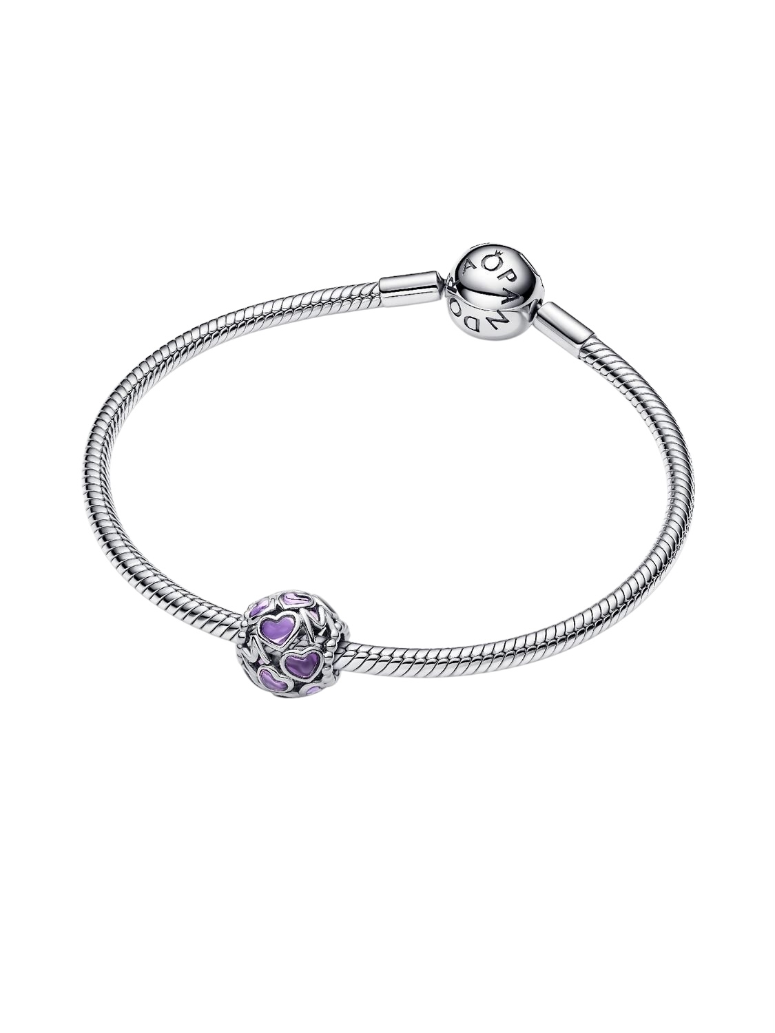 Celebra los lazos de la maternidad con un charm con corazones delicados, detalles significativos y un fresco color lavanda.