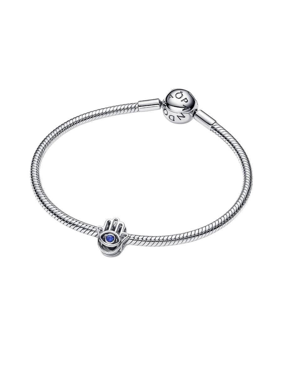 Invoca protección y energía positiva con nuestro Charm Mano de Fátíma en plata de ley. Con un diseño calado y cristales sintéticos azules, deja que sea tu luz guía hacia la fuerza y la serenidad.