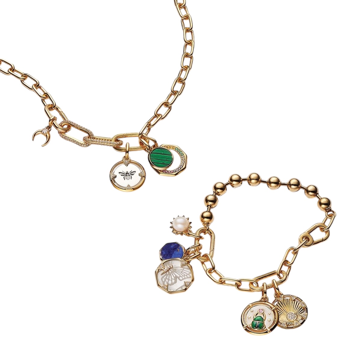 Añade energía positiva y productividad a tu vida con nuestro medallón de abeja con un recubrimiento en oro de 14k. Nuestro charm de dos caras tiene una abeja impresa con cuatro puntas triangulares engastadas con gemas brillantes en un lado y el mensaje grabado: «Protect your energy» (Protege tu energía) en el otro. Añádelo a tu colección para simbolizar que la vida gira en torno al trabajo significativo, la positividad y el equilibrio. Este charm de medallón se puede llevar en los portadores de charms de Pandora Moments y en los eslabones que se pueden abrir en los portadores de Pandora ME.