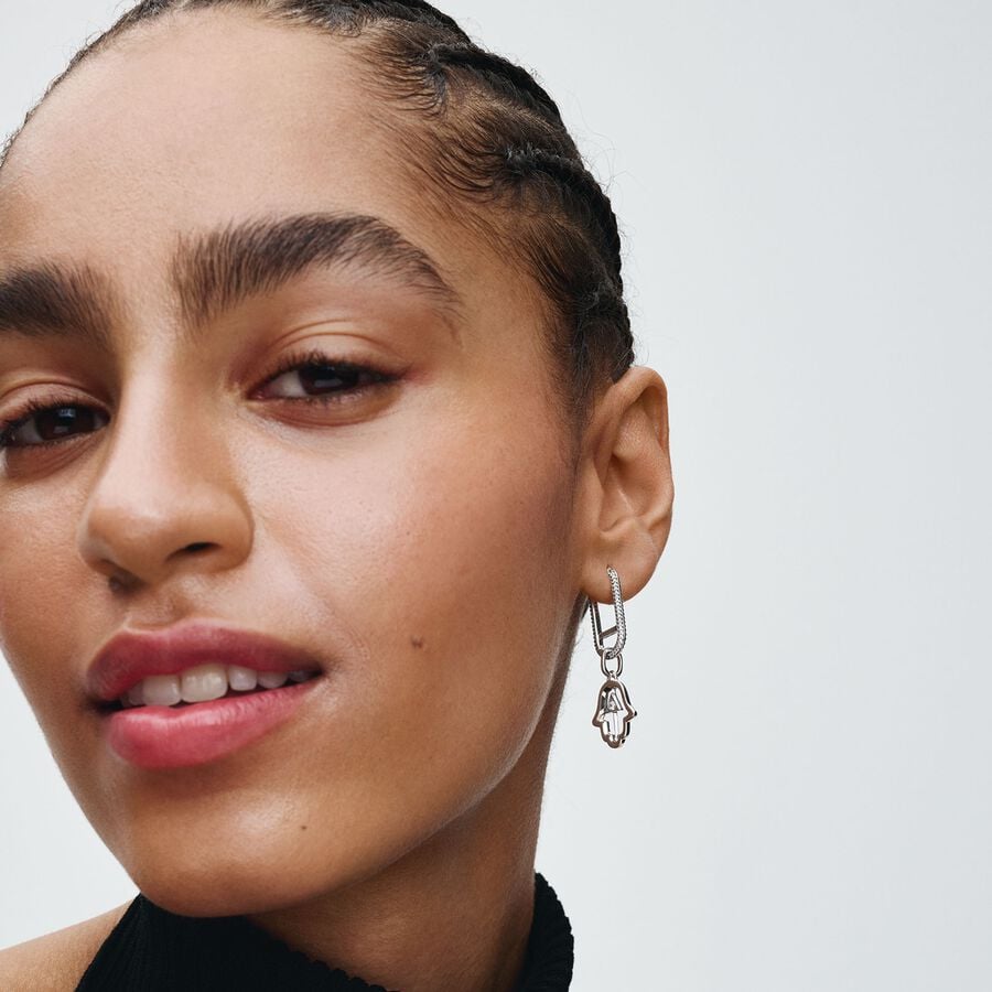 Canaliza la positividad con nuestro charm Hamsa en plata de primera ley. Con una gema radiante en el centro y delineada con microengastes en el reverso, este medallón es un símbolo de protección, abundancia y amistad. Añádelo a tu colección como talismán para captar todo lo positivo y alejar la energía negativa.