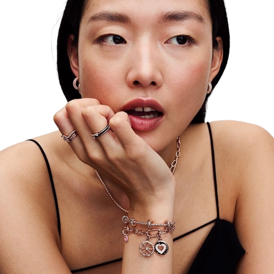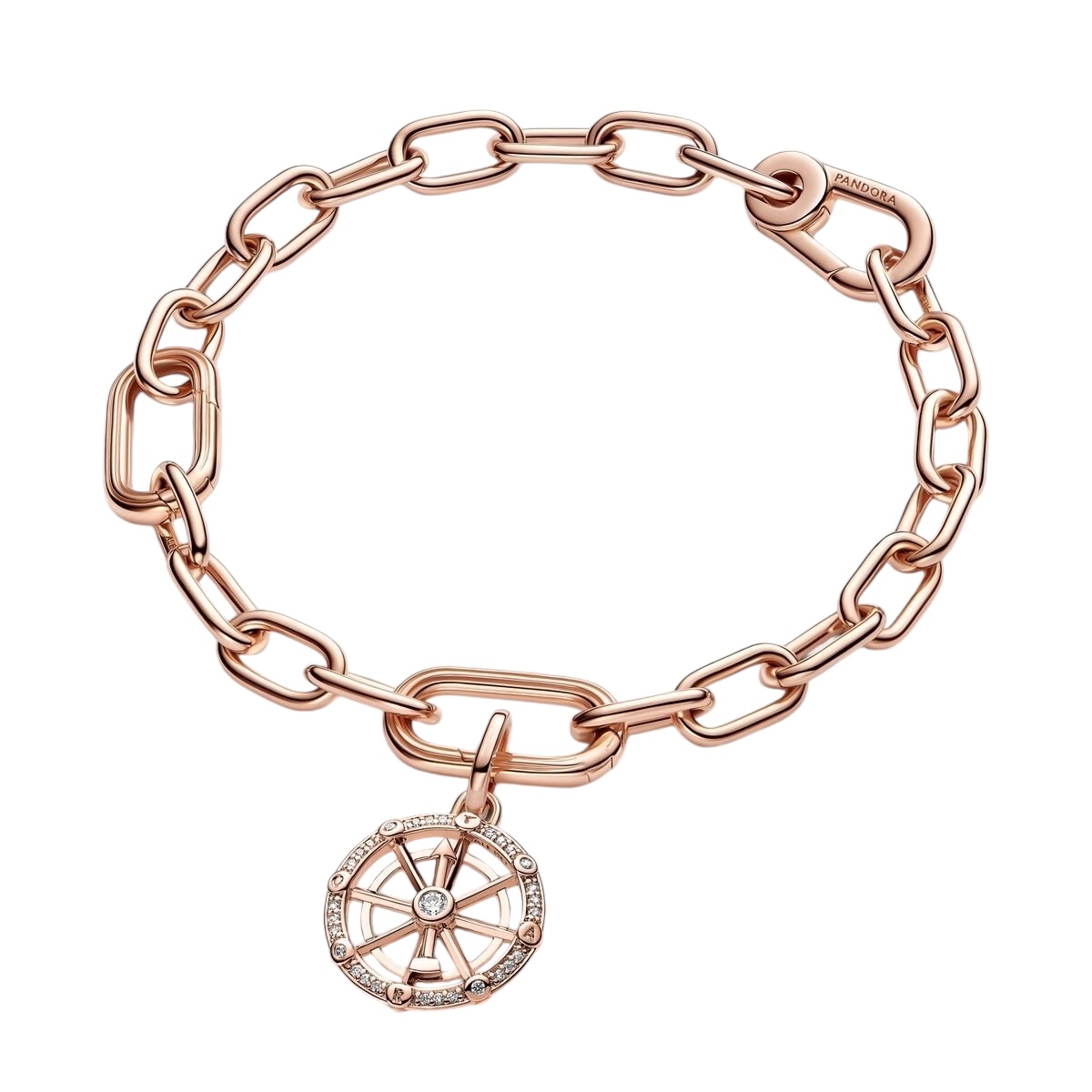 Busca tu suerte con el Charm de Medallón Rueda de la Fortuna de Pandora ME. Simbolizando el karma y la buena suerte, este charm de la rueda de la fortuna de 8 puntos tiene una flecha móvil en el centro, gírala y señala el destino que elijas. Los cuatro puntos de la rueda de la fortuna se han decorado con las letras T, A, R y O grabadas, inspiradas en las letras de algunas versiones de la carta del tarot de la rueda de la fortuna. Se puede leer en un círculo como TAROT, con la T repetida. Este charm de medallón se puede llevar en los portadores de charms de Pandora Moments y en los eslabones que se pueden abrir en los portadores de Pandora ME.
