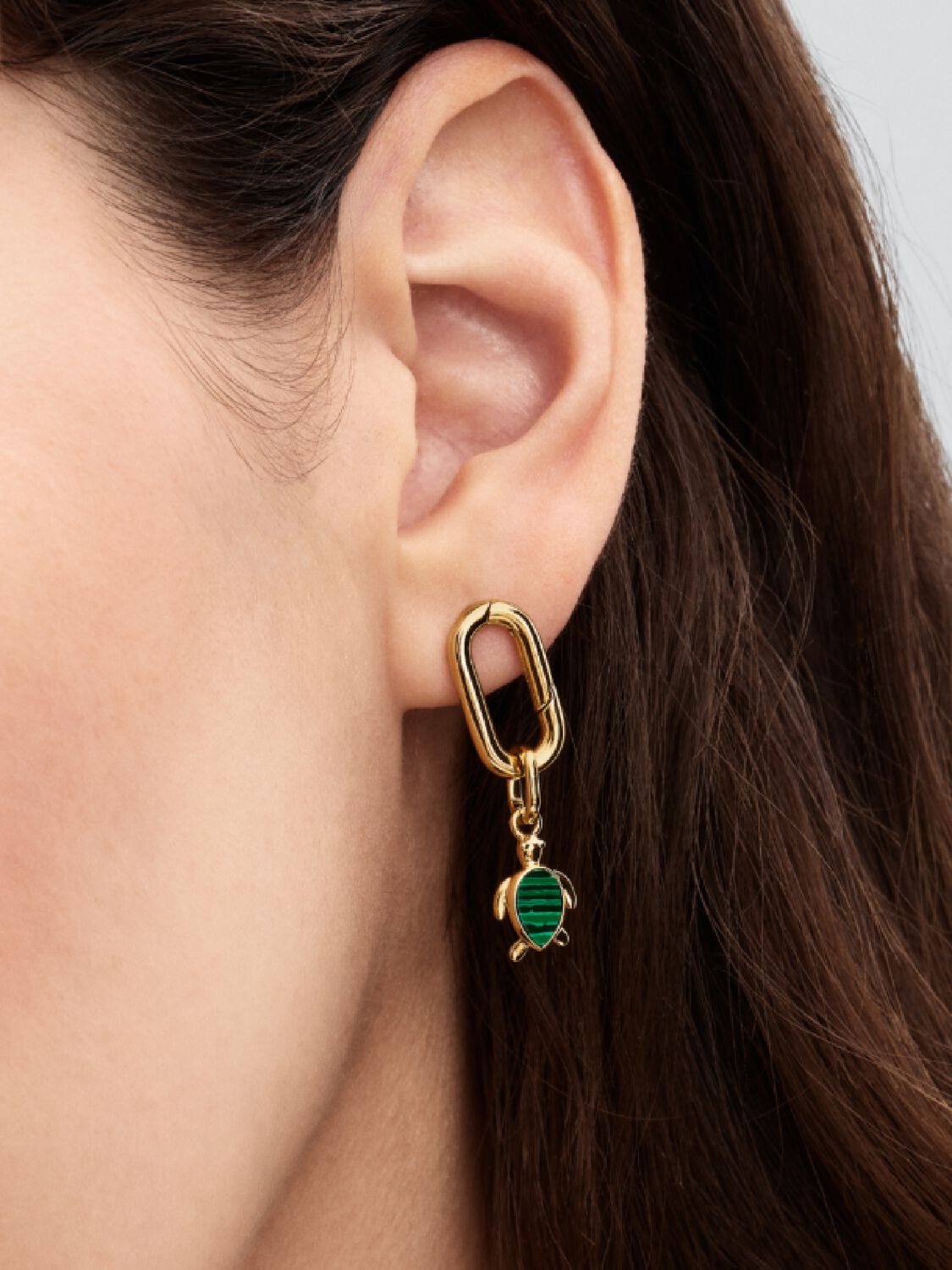 Descubre un símbolo de longevidad y paciencia con este charm inspirado en una tortuga, que presenta una bonita malaquita sintética y detalles intrincados.
