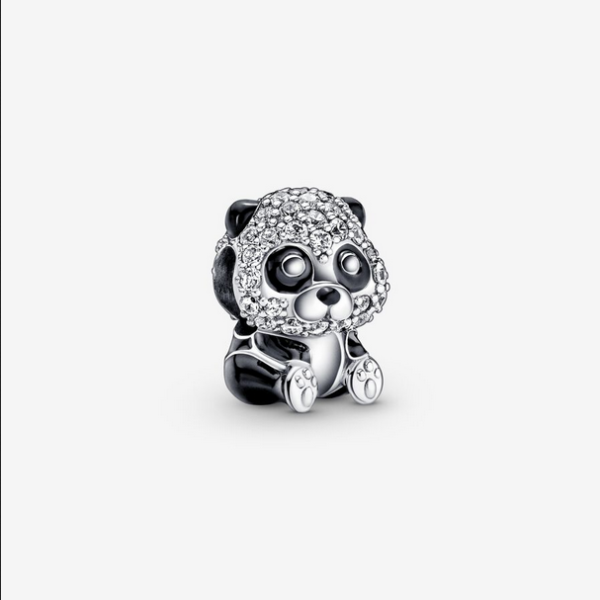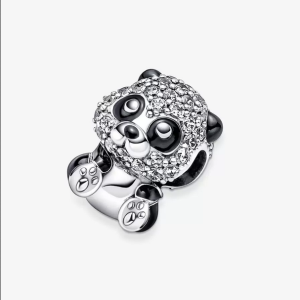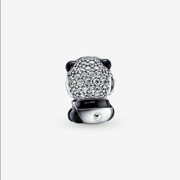 Charm Oso Panda Brillante. Inspirado en el amado oso panda gigante, este símbolo de poder y sabiduría brilla con circonitas cúbicas transparentes y esmalte de color negro. La gran cabeza del Oso Panda, ligeramente inclinada, aporta una dosis extra de personalidad a nuestro adorable amigo. Lleva nuestro oso panda con otros charms de animales y recuerda que no debes dar de lado a tu lado salvaje.