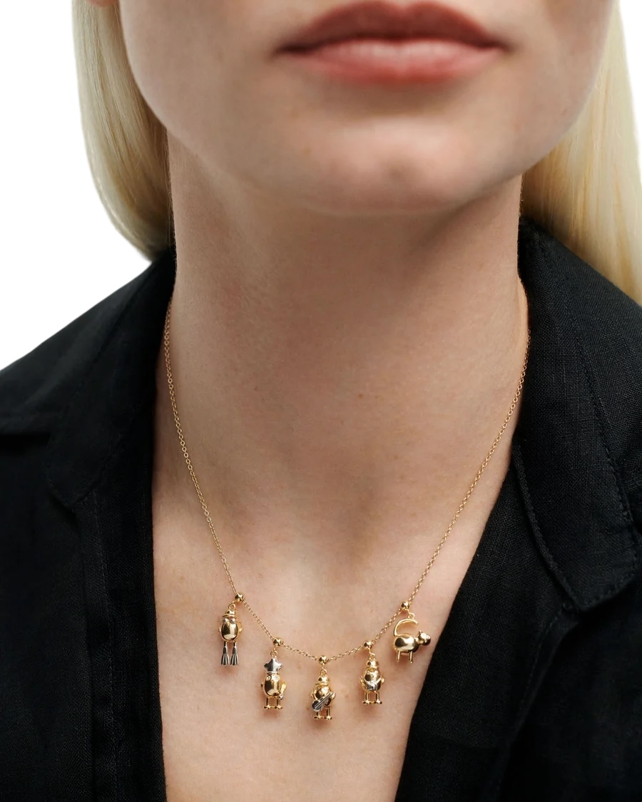 Mini charm gato adornado con circonita blanca para personalizar collar o pulsera