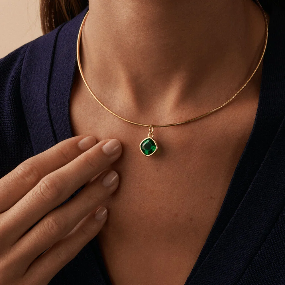 Colgante de circonita verde. Un amuleto de luz perfecto para combinar con el resto de colgantes de la colección. Es la pieza clave para elevar tus looks y darles un brillo increíble. Crea tu collar personalizado con los amuletos de moda de la nueva colección de Maria Pombo X AGATHA. Joya acabada en rodio.
