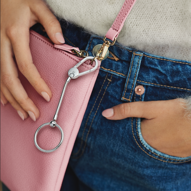 Personaliza tu bolso con el Colgante de bolso para charms Pandora Moments. Acabado a mano en plata de primera ley, este colgante de bolso para charms presenta un gran cierre de mosquetón y anillos con el icónico diseño cadena de serpiente de Pandora. Este porta charms admite un máximo de cinco charms. Complementa tu look y el de tu bolso con un elegante colgante hecho para llevar los charms que más te gusten y cuenten algo de tí.