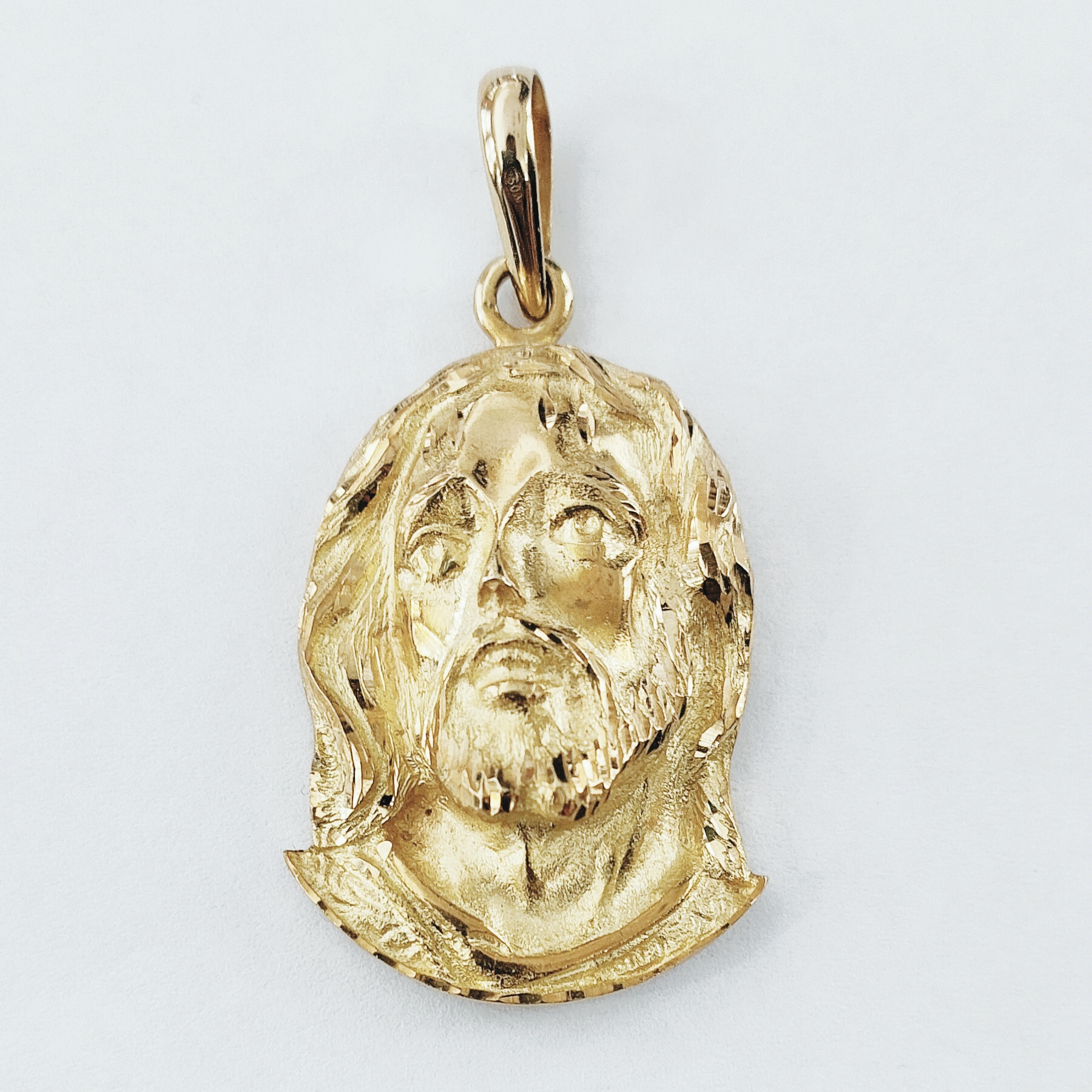 Colgante en oro de ley de 18k imagen cabeza de Cristo en mate y brillo