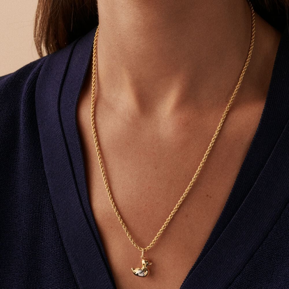 Un amuleto que representa la gran aventura de la vida que es tener hijos.Mamá pata protege a sus patitos y los lleva siempre cerca.Acumula tantos patitos como quieras y luce a tu tribu con orgullo. Crea tu collar personalizado con los amuletos de moda de la nueva colección de Maria Pombo X AGATHA. Joya acabada en oro y rodio.