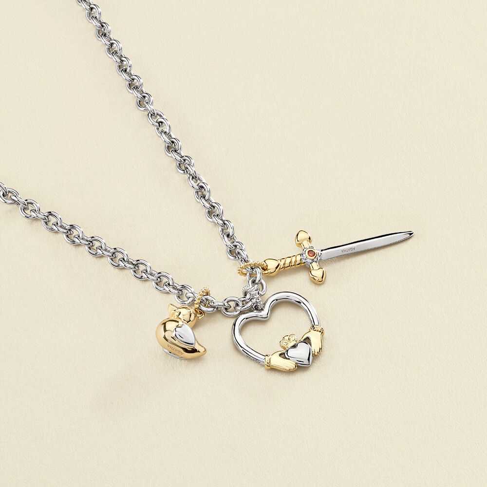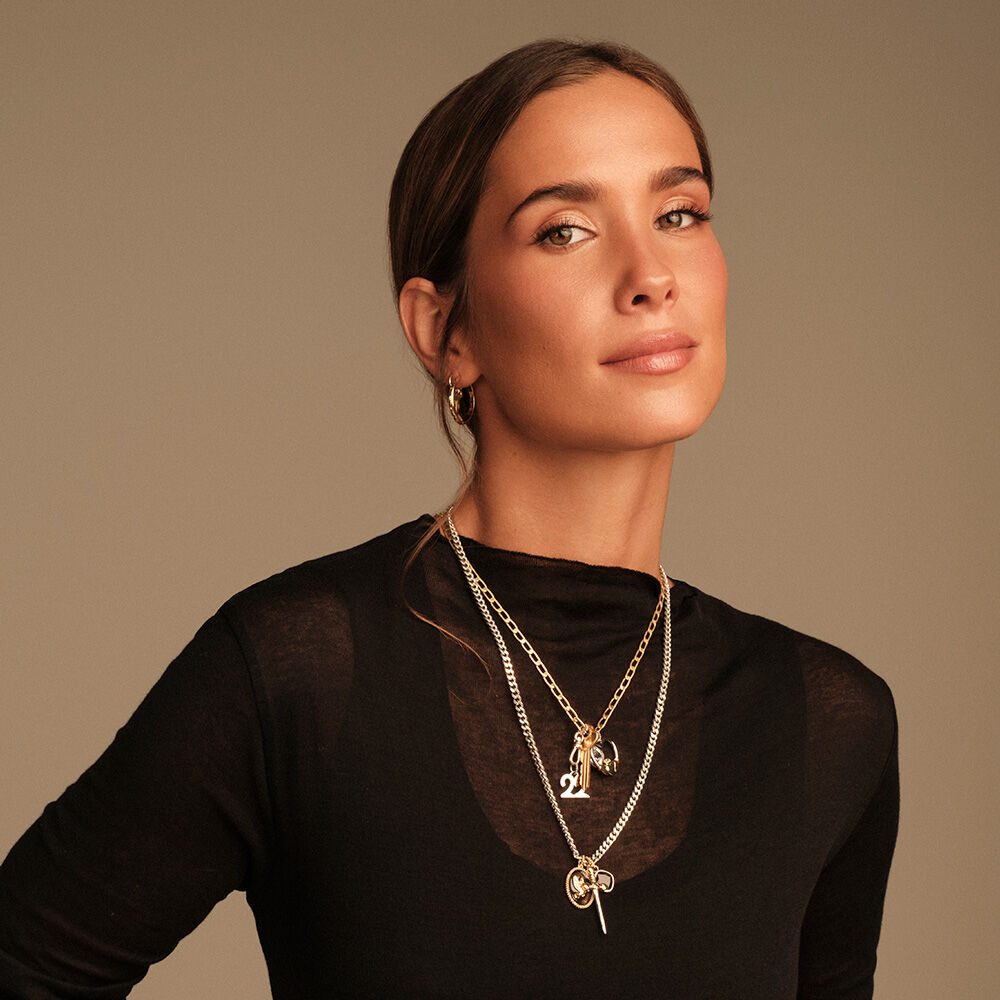 Un amuleto que da el poder de poder con todo.Símbolo de valentía e independencia, representa el coraje para luchar por tus metas. Crea tu collar personalizado con los amuletos de moda de la nueva colección de Maria Pombo X AGATHA. Joya acabada en oro y rodio.