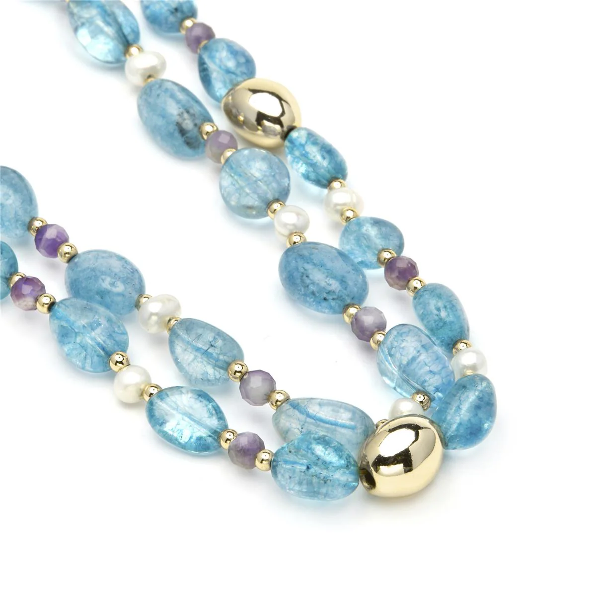 Collar Aswudi de Plata de Ley 925 y Cristal Azul acabado en Oro Amarillo 18k
