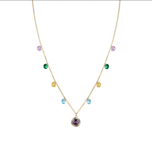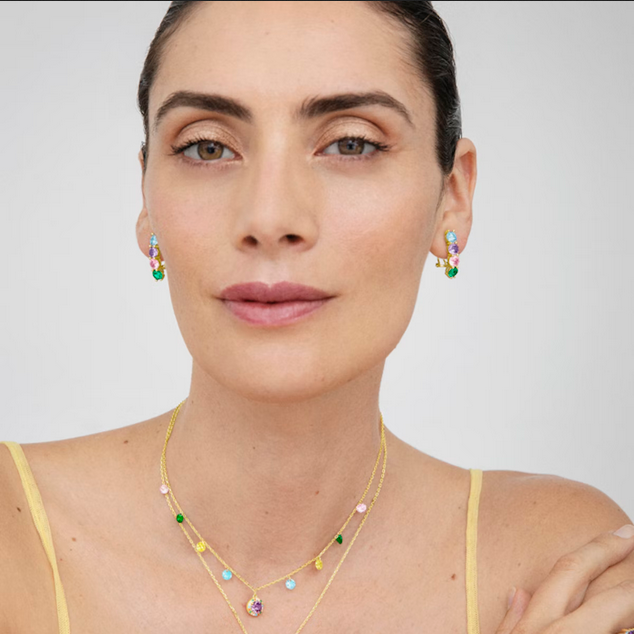 Collar Ciadar de Plata de ley 925 y Circonita Multicolor acabado en oro amarillo de 18 quilates. El nombre de la línea lo avala: ATELIER Color. Joyas que se rinden a un diseño atípico que han colocado estos diseños sensuales en una posición privilegiada: formando parte del fondo de armario de la mujer actual. Diseños constituidos por circonitas de colores cuidadosamente terminados a mano. Una redefinición de diseños de joyería que se materializa en diseños puros y simples. Creaciones que expresan la singularidad femenina: ready- to-wear.