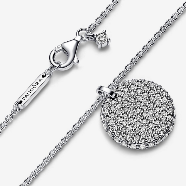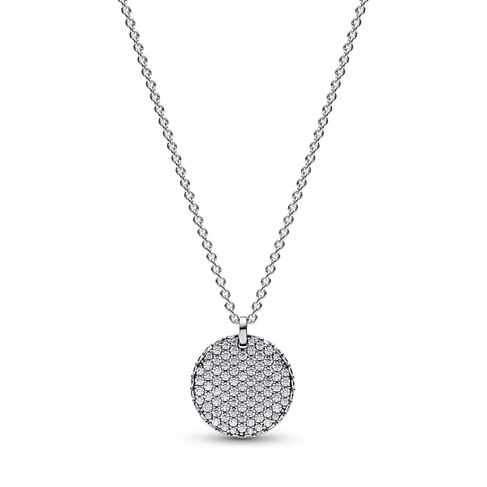 Deja que tu brillo hable por ti con nuestro Collar Círculo en Pavé de Pandora Timeless. Con un disco inspirado en un medallón embellecido con 89 circonitas cúbicas transparentes, este collar en plata de primera ley es perfecto para quienes aman y brillan con gran intensidad. Todas las gemas están orientadas hacia afuera e incluso el borde del medallón se ha embellecido con gemas para crear un efecto tridimensional. El reverso pulido del disco incluye el logotipo de Pandora grabado. Deja brillar tu amor por los brillos con esta joya única o regálasela a esa persona que ilumina tu vida.