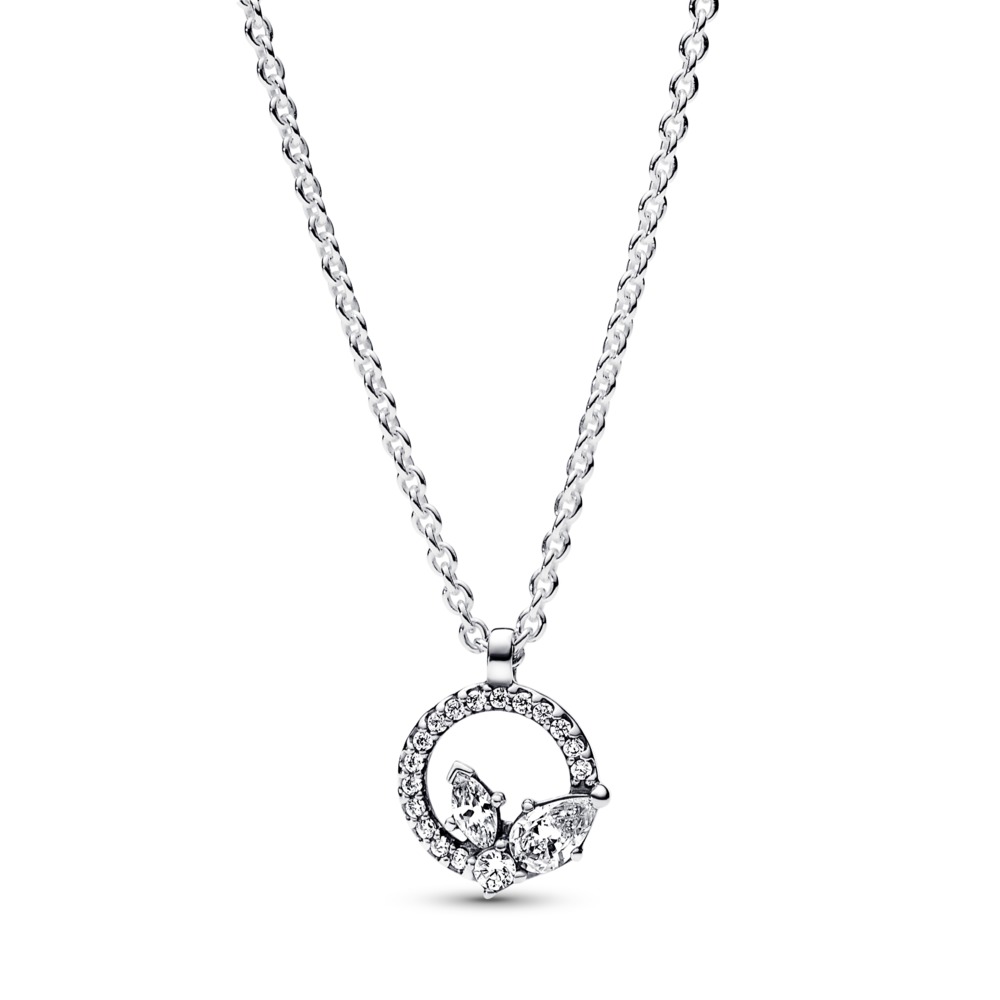 Haz que miren dos veces con nuestro Collar Círculo y Herbario Brillante. Fabricada en plata de ley, esta joya única se inspira en las formas naturales de los pétalos y las hojas prensadas. El colgante tiene un círculo calado con un conjunto de circonitas cúbicas en la mitad inferior en forma de pera y talla marquesa, con una gema redonda brillante en el centro. Este elegante collar, que se puede ajustar a dos longitudes, es un recordatorio de la belleza de la naturaleza y de su capacidad para sorprender y deleitar. Llévalo solo o combinado con otros brillos inspirados en la naturaleza para conseguir un estilo más llamativo.