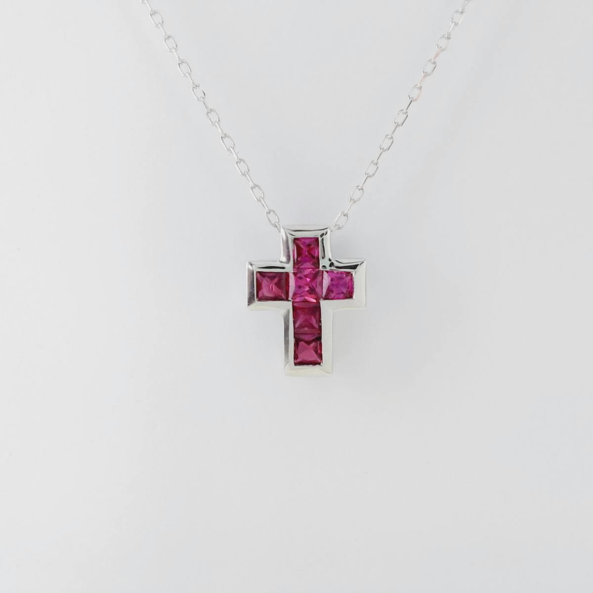 Cruz en oro blanco con 6 rubis