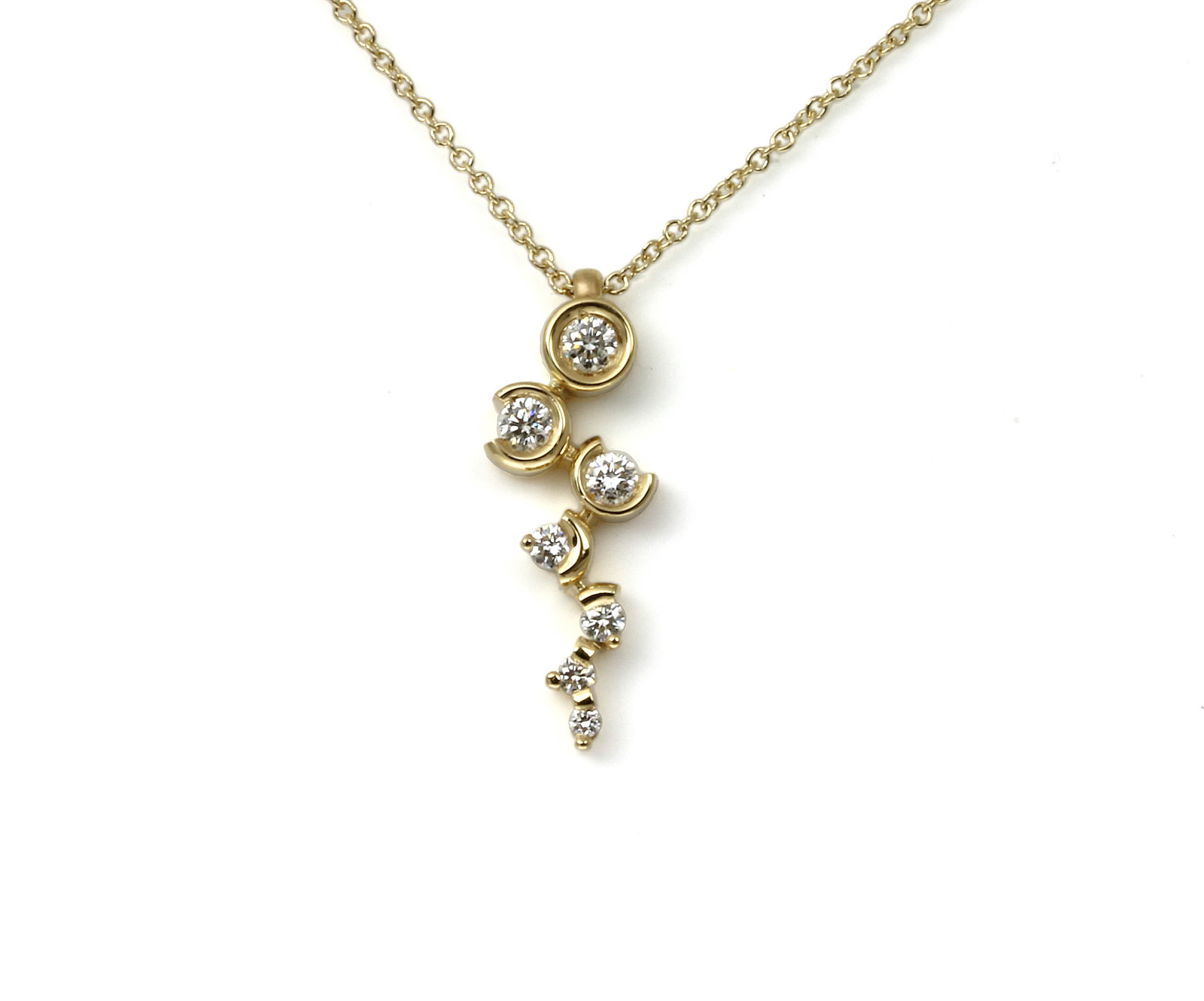 Cadena de oro de 18k en oro Blanco y colgante en chorro en diminución con 7 diamantes