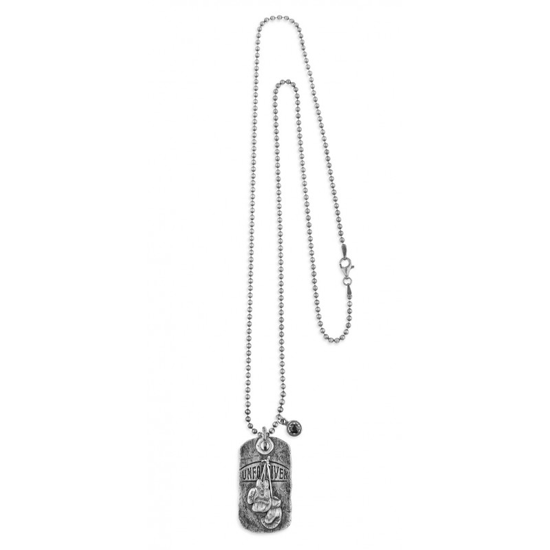 Collar en plata de ley de bolas con colgante chapa tipo militar guantes de boxeo y grabado «unforgiven»
