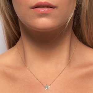 Gargantilla en plata de primera ley con baño de oro de 18k con cruz multicolor