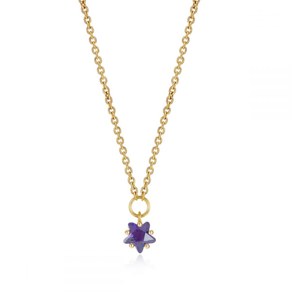 Collar en plata de ley con baño de oro de 18k de 38cm con alargador ajustable hasta 46cm y colgante estrellita violeta