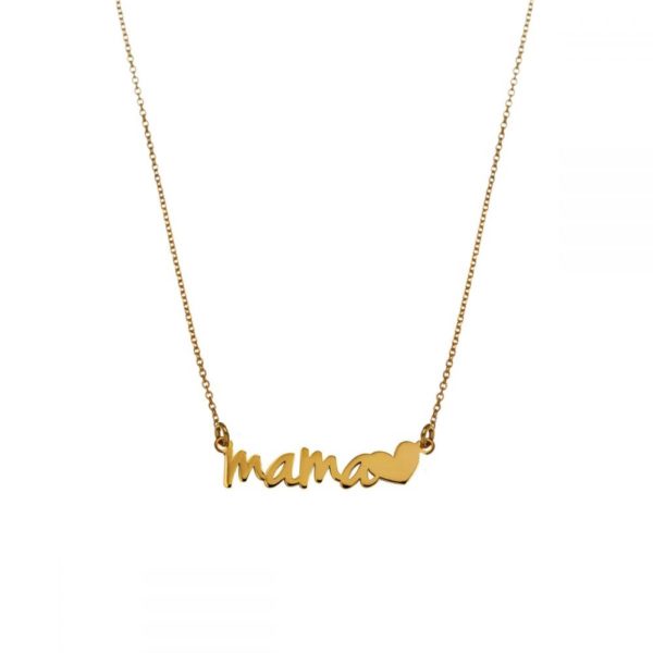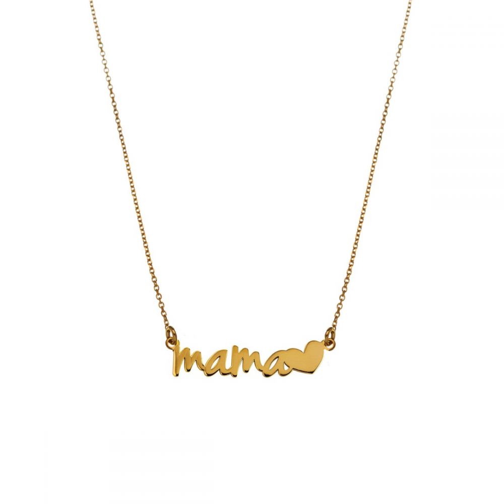 Collar en plata de primera ley con baño de oro de 18k ajustable de 38 a 43cm y motivo mamá con corazón