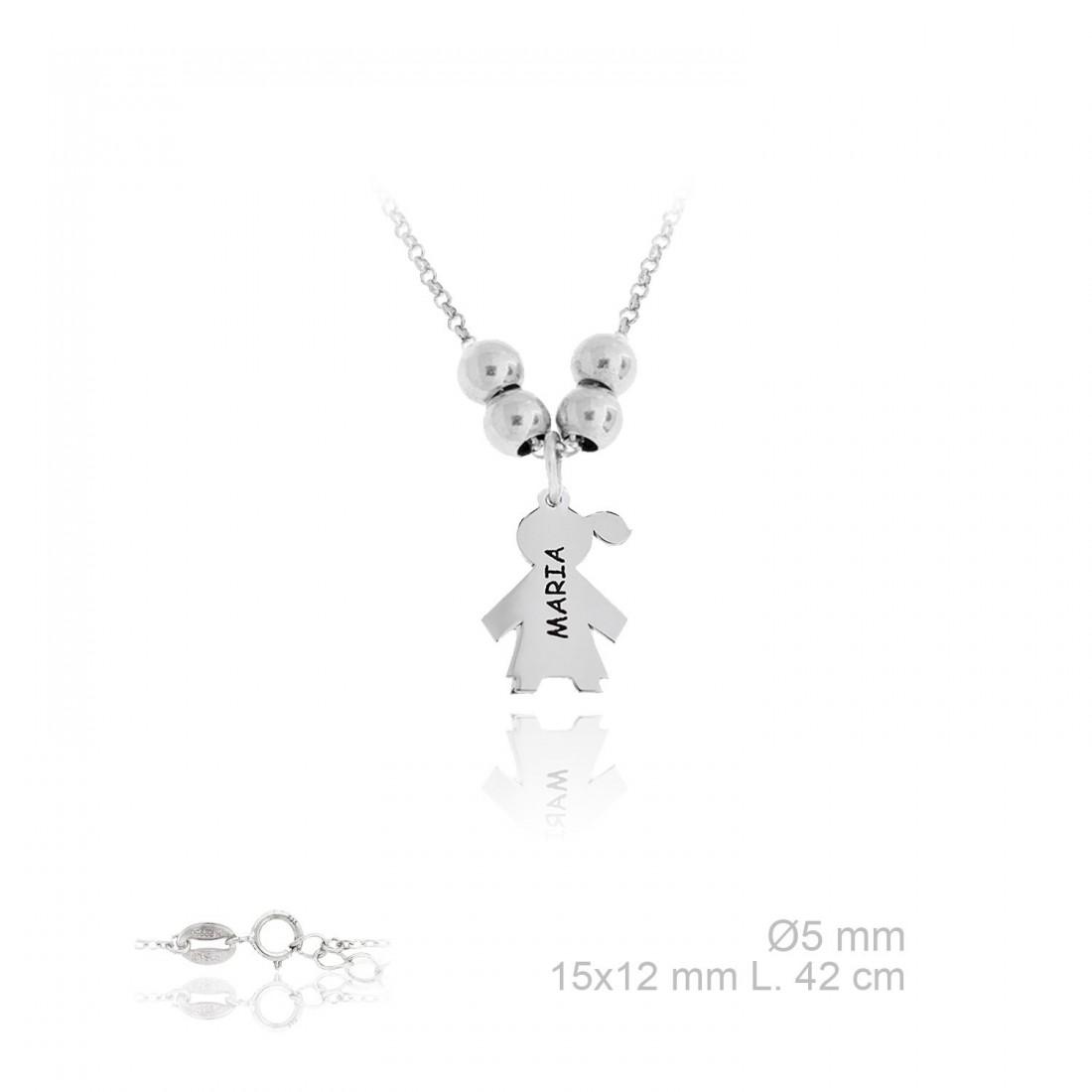 Gargantilla en plata de ley con cadena de 42cm y colgante niña con grabado del nombre que prefieras