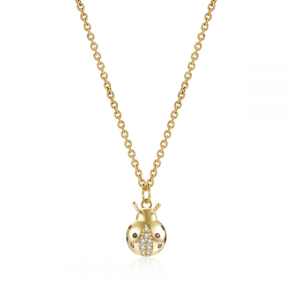 Collar en plata de ley con baño de oro de 18k mariquita con circonitas blancas y colores