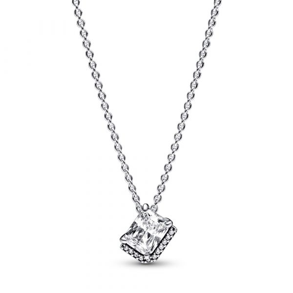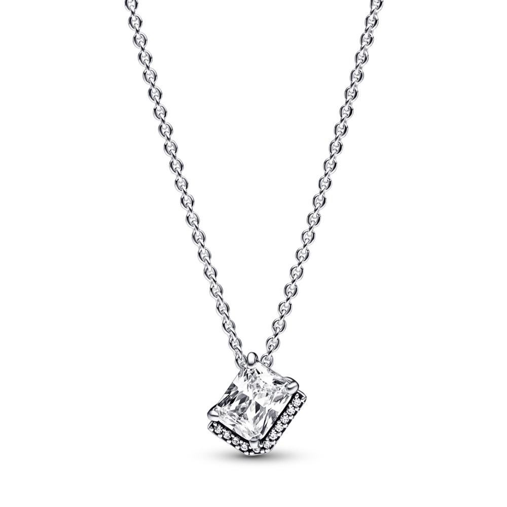 Eleva el tono de tus look diario con el Collar Halo Rectangular Brillante. Acabado a mano en plata de primera ley, este diseño incluye un colgante con una gema rectangular en relieve, rodeada por un medio halo brillante de pavé en un lateral. Este collar incluye un cierre de mosquetón, que se puede ajustar a dos longitudes. Lleva el collar con otros diseños brillantes de Pandora Timeless para crear una combinación atractiva con un acabado clásico.
