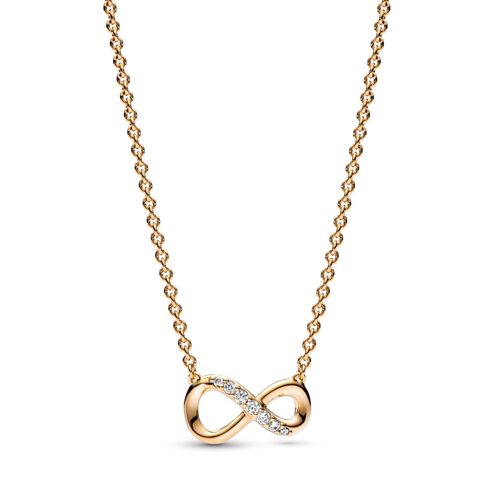 Celebra vuestro amor hasta el infinito y más allá con el Collar Infinito Brillante. Con un colgante fijo del símbolo del infinito, esta joya con recubrimiento de oro de 14k simboliza el poder de los lazos inquebrantables y sirve como recordatorio del amor que compartes con quienes más te importan. El símbolo se presenta embellecido con gemas a lo largo de la línea superior del motivo y un cierre deslizante, para que puedas ajustar la longitud de tu collar. Ponte el collar para demostrar lo mucho que te importa un ser querido o regalárselo a alguien que lleves cerca del corazón.