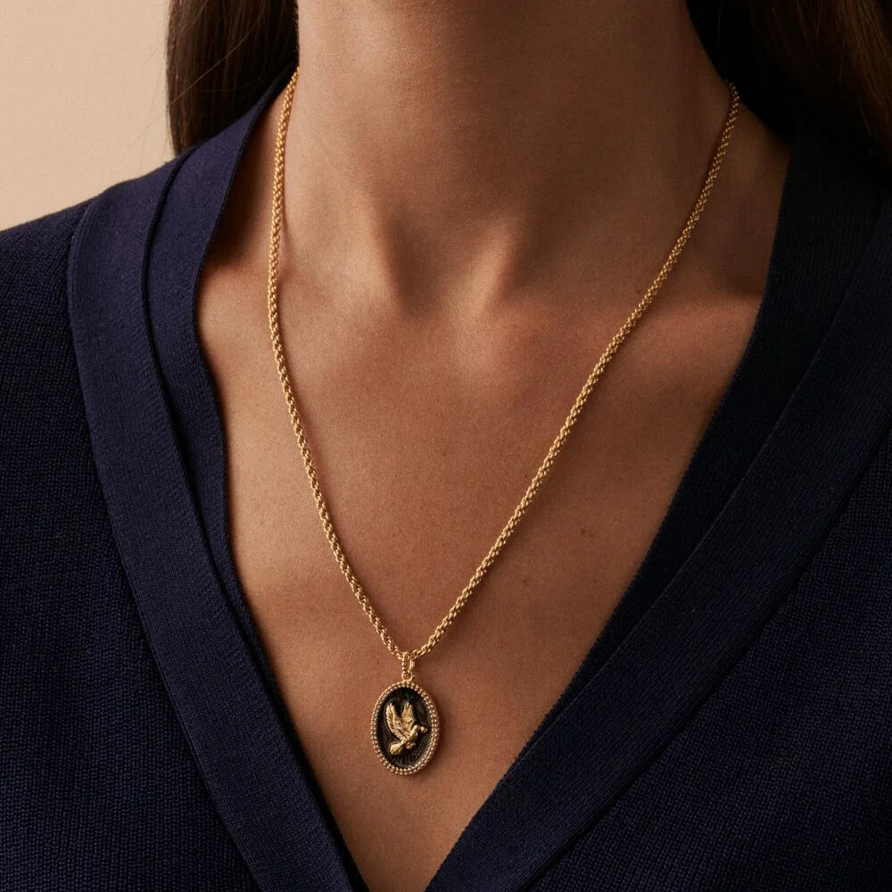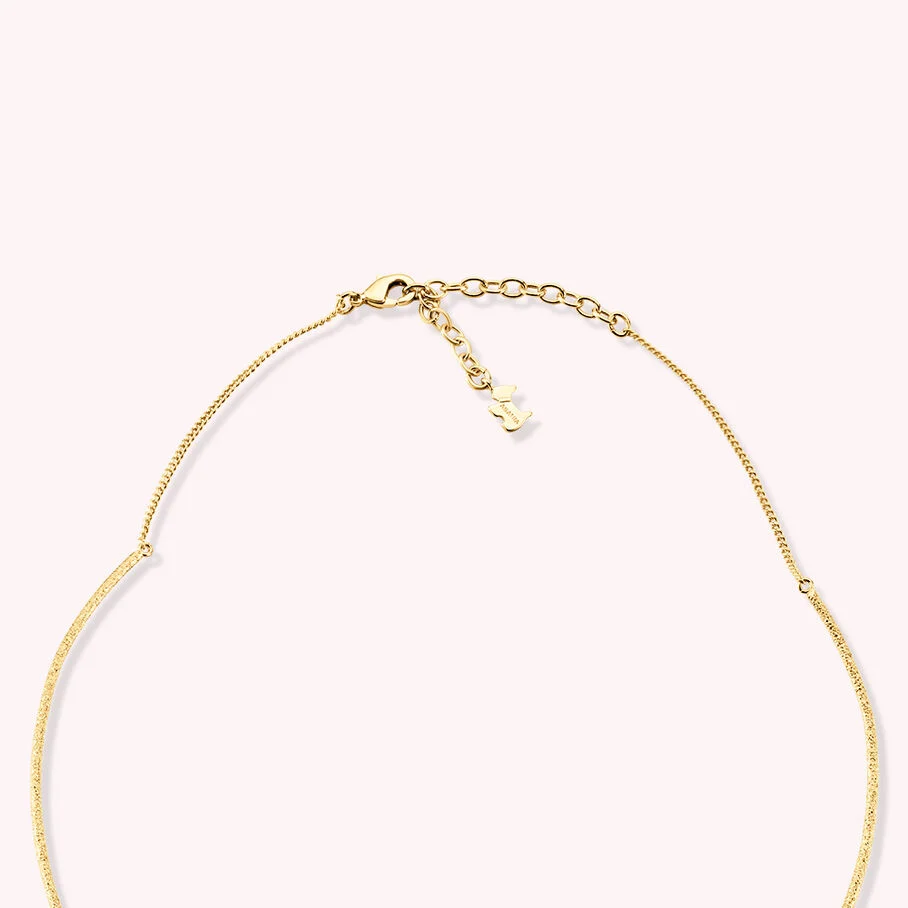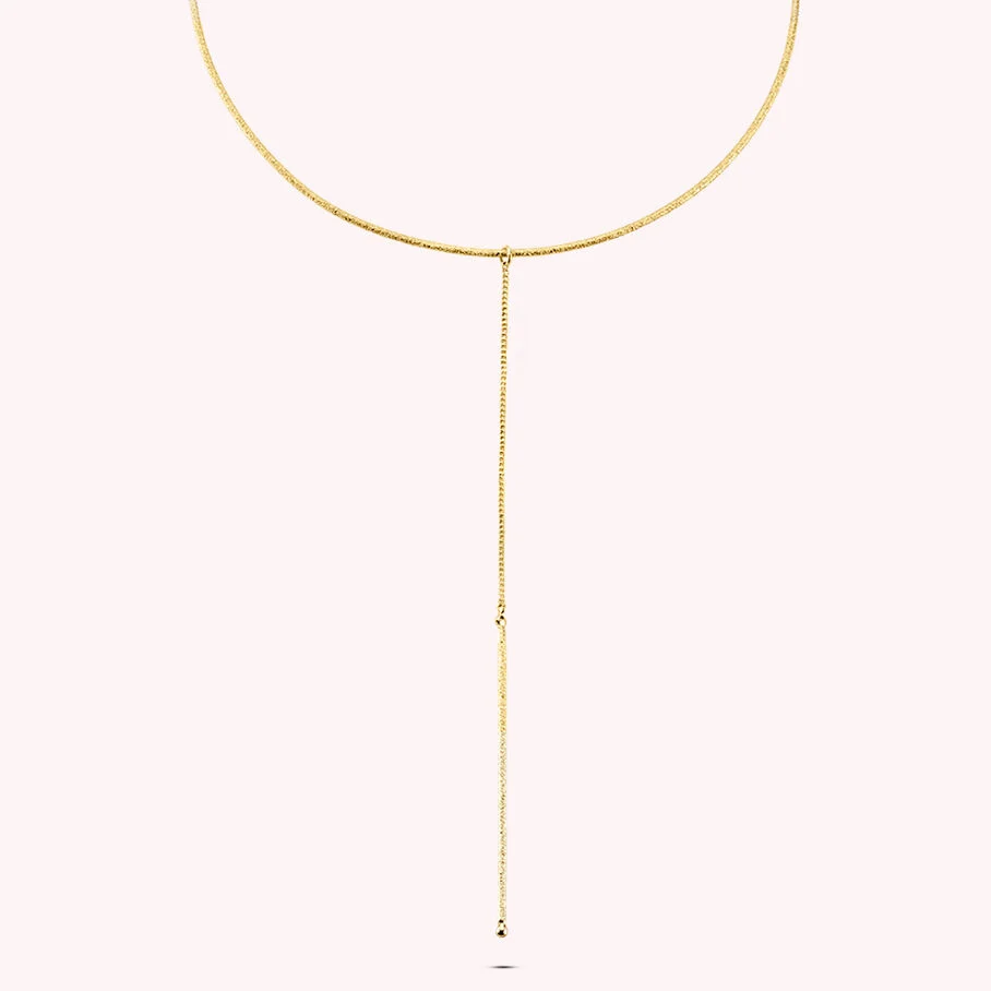 Collar en forma de Y semi rígido acabado en oro de 18k con parte texturizada. Una joya que acaparará todas las miradas por su originalidad y porque es de lo más favorecedora. Potencia la diosa que llevas dentro con lo nuevo de Maria Pombo X Agatha Paris.