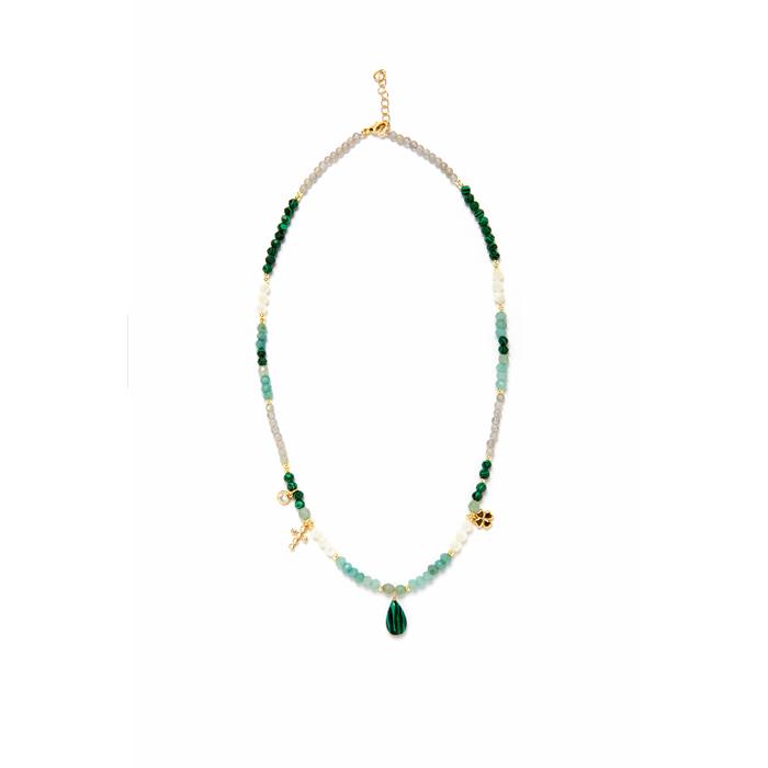 Collar Miya de Plata De Ley 925, malaquita Y Baño Oro De 18 Quilates.