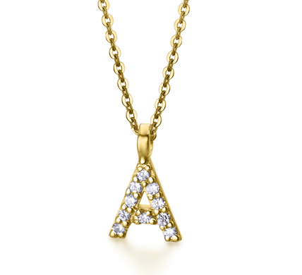 Cadena de oro de 18k con colgante inicial con diamantes en talla brillante