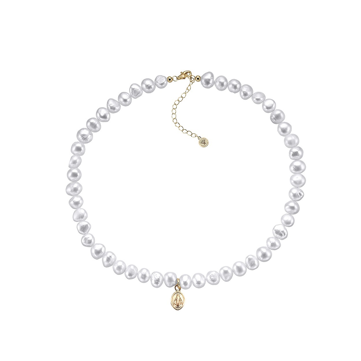 Collar Durán Exquse de la colección CoCo con perla barroca y medalla realizado en plata 925 bañado en oro amarillo de 38 + 5 cm