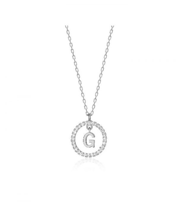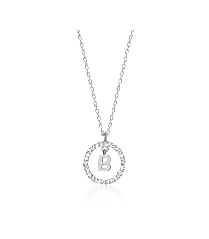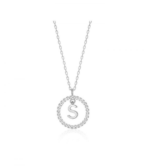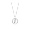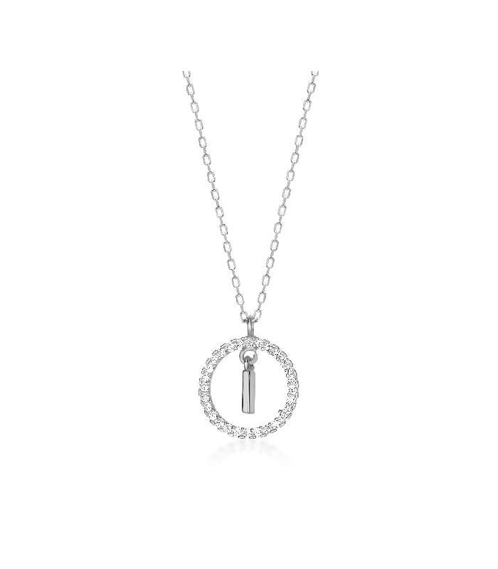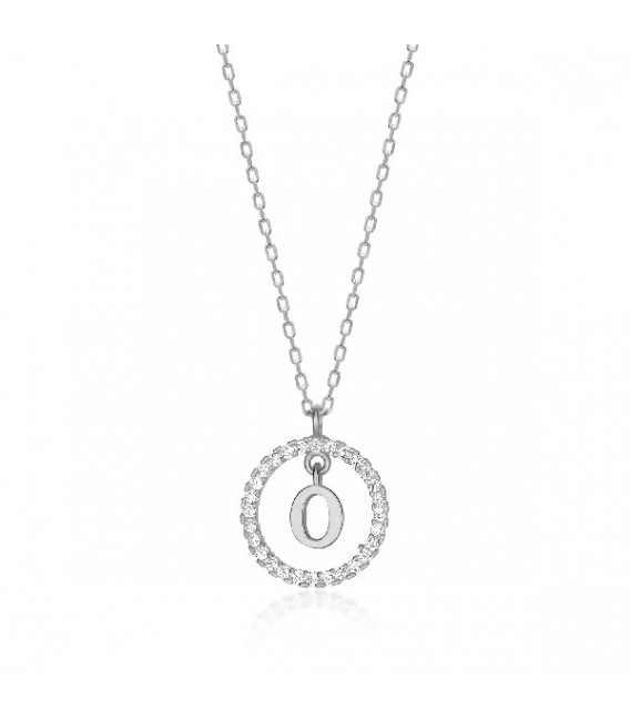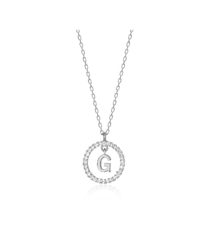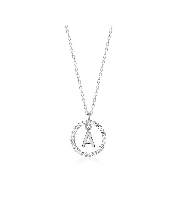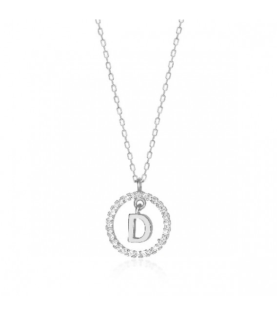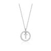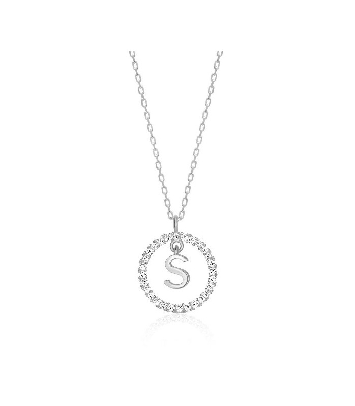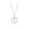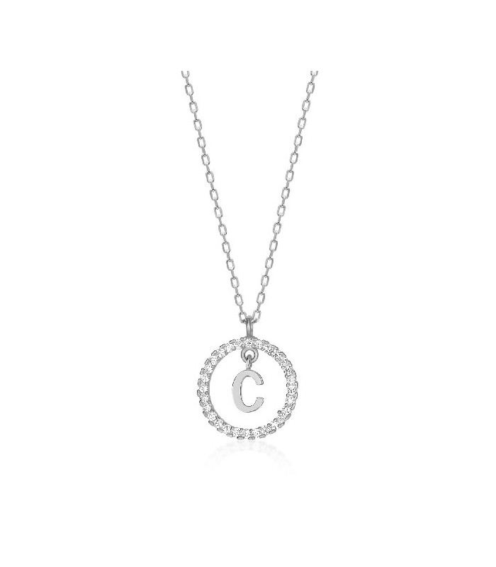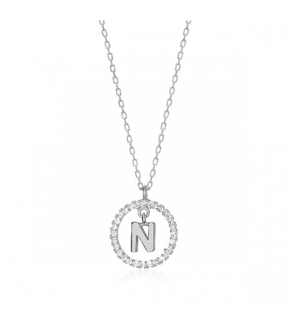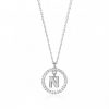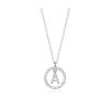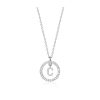 Colgante circulo con 28 circonitas brillantes transparentes e inicialen plata