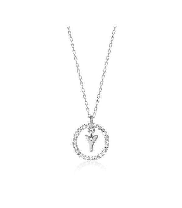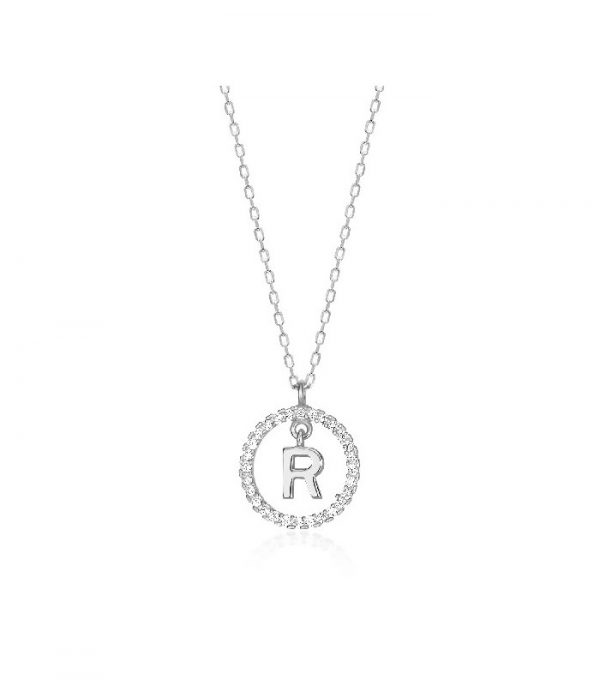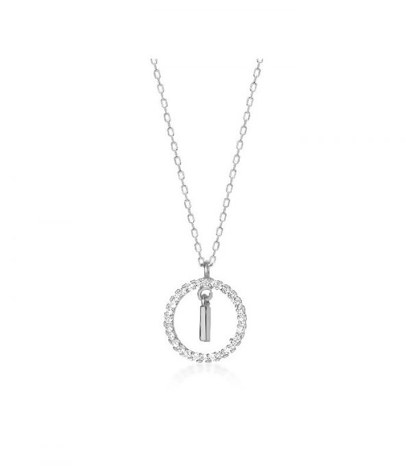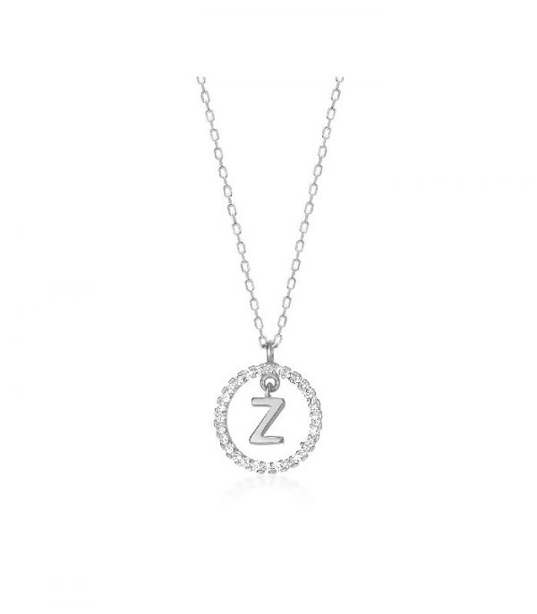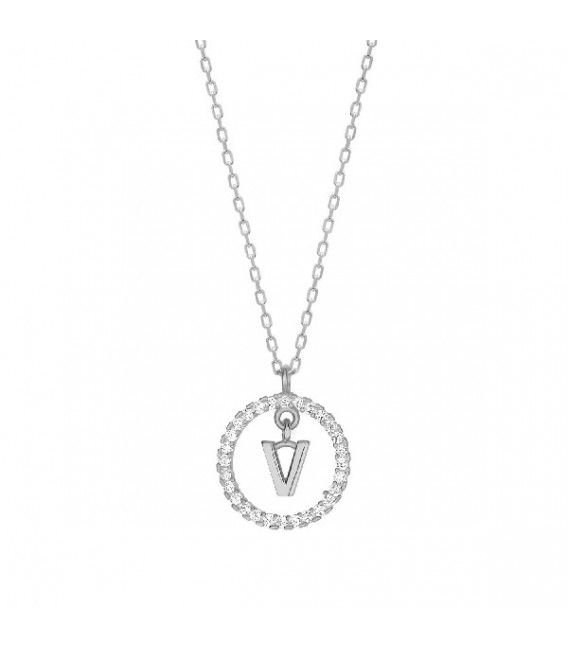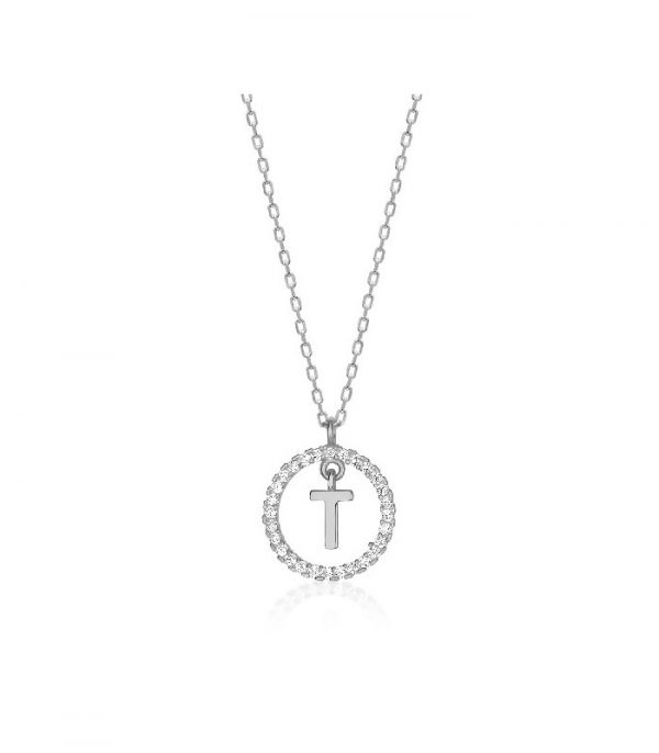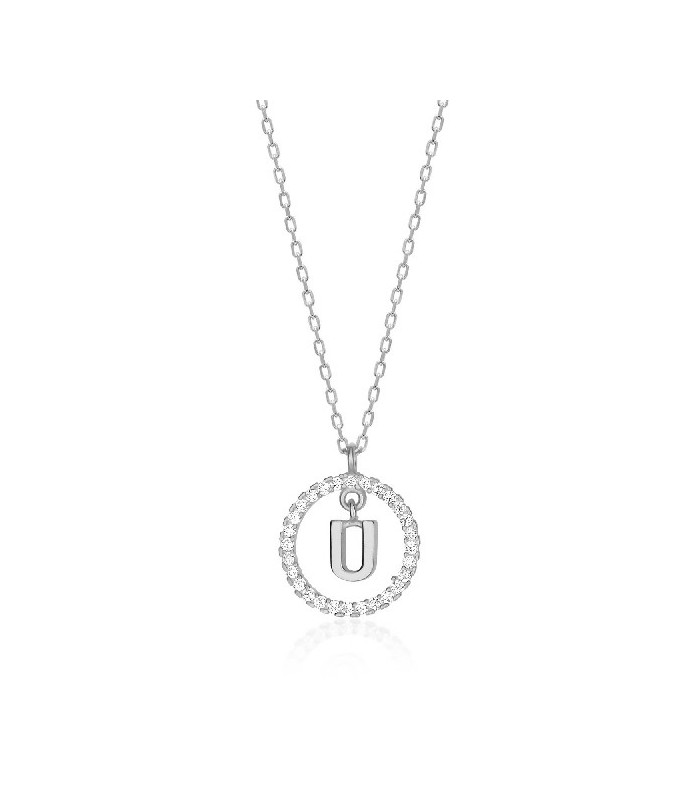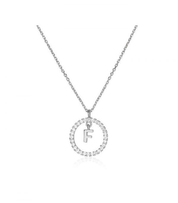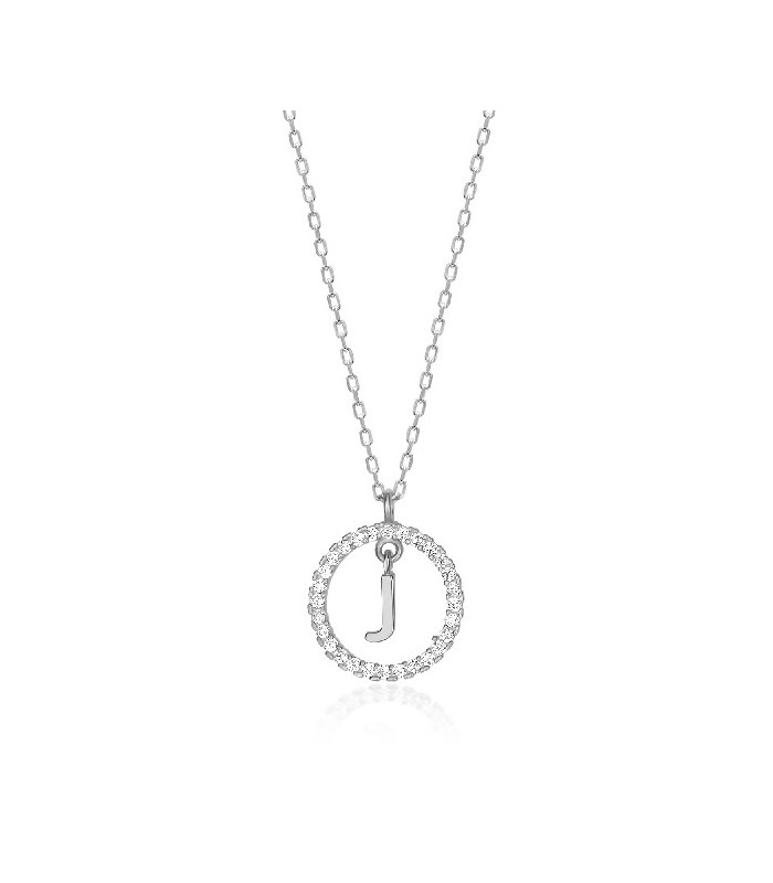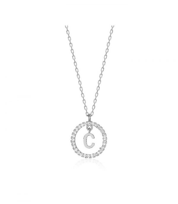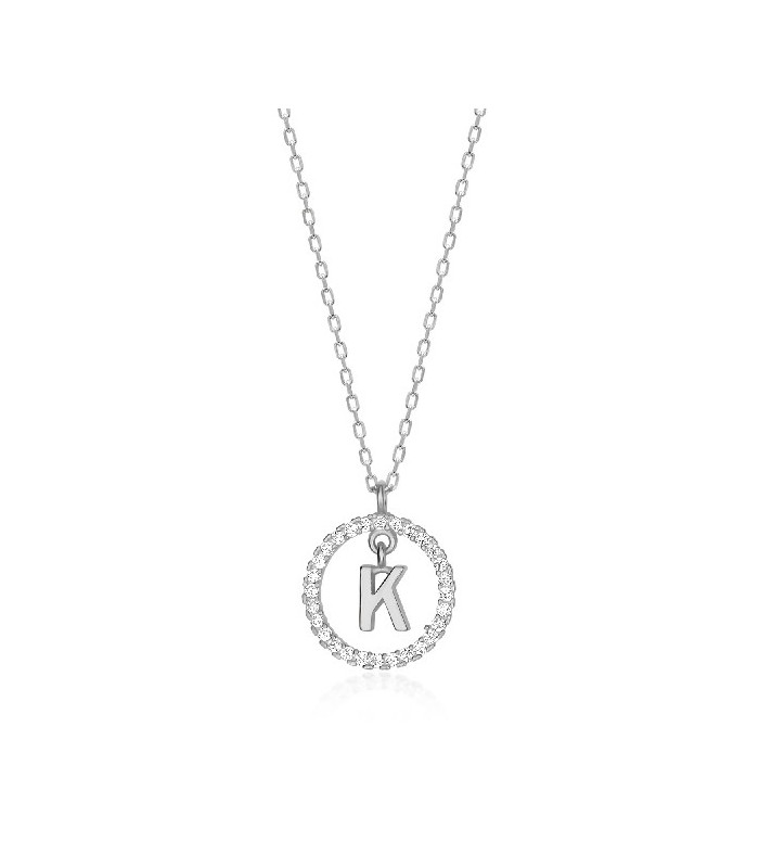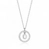 Colgante circulo con 28 circonitas brillantes transparentes e inicialen plata