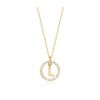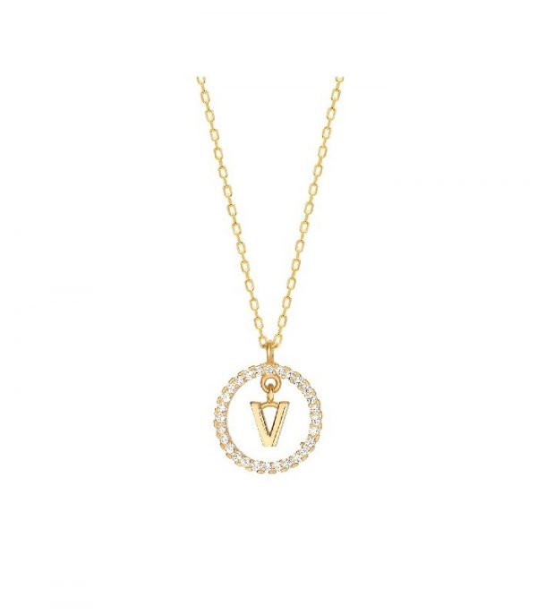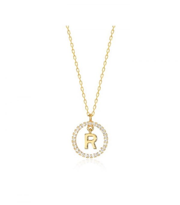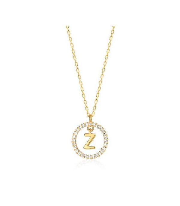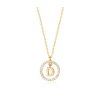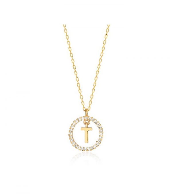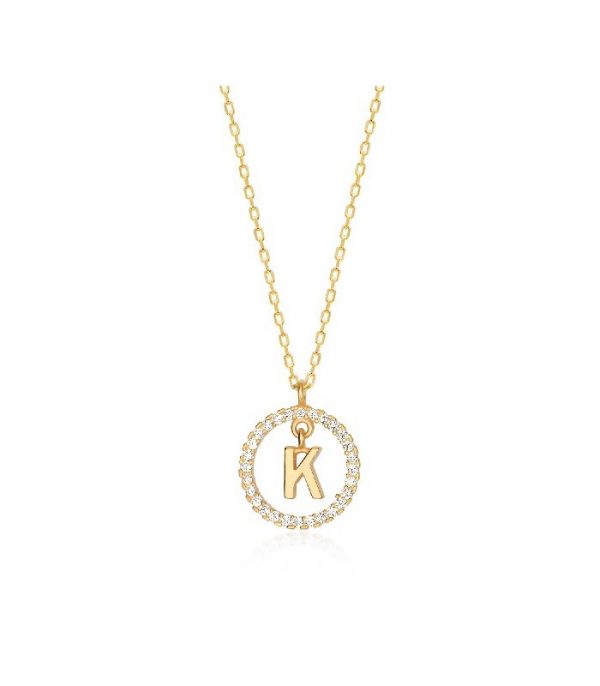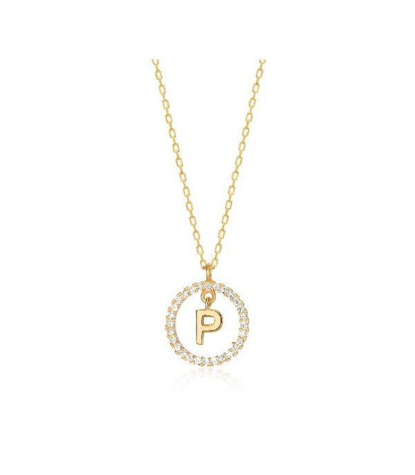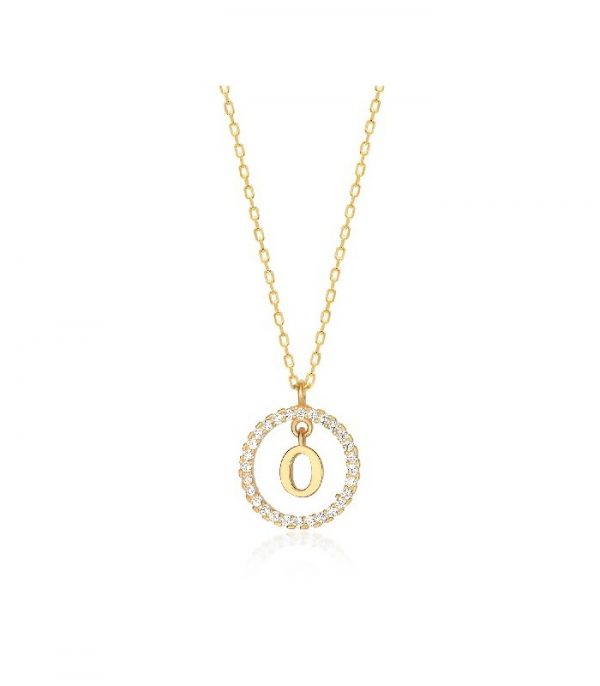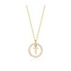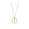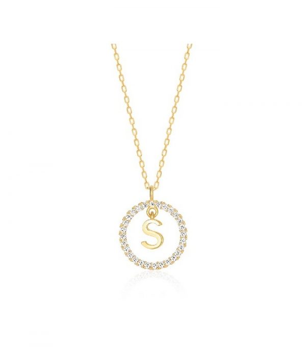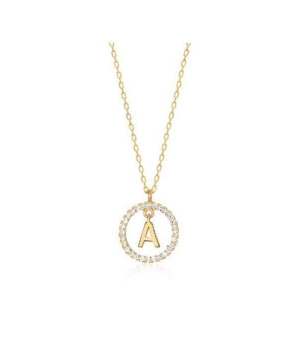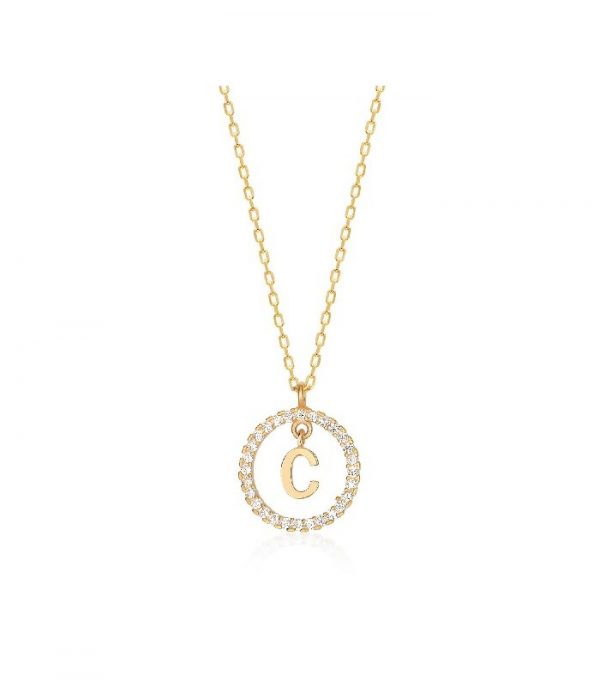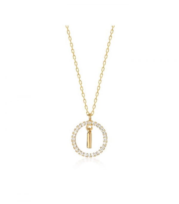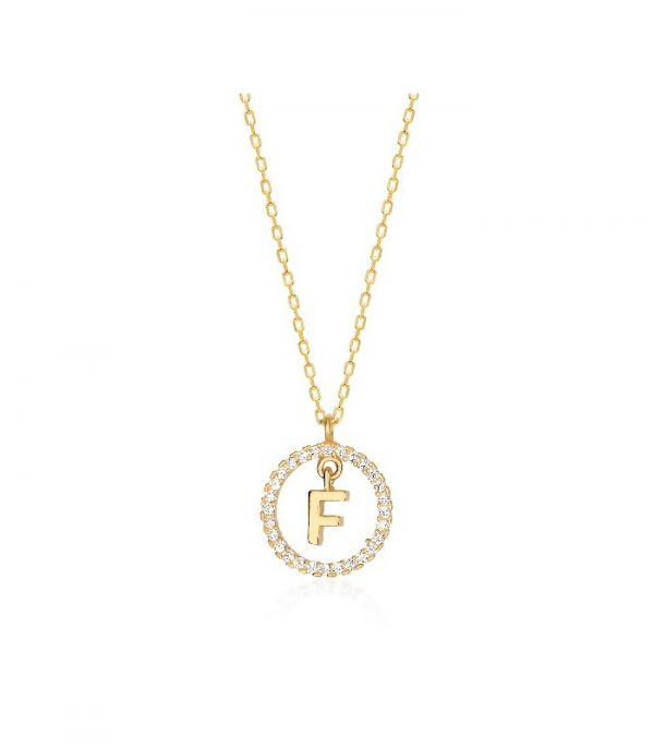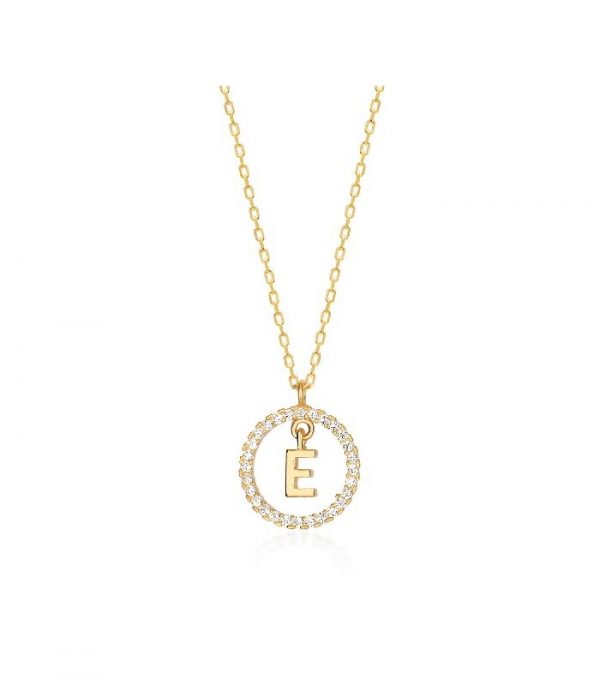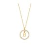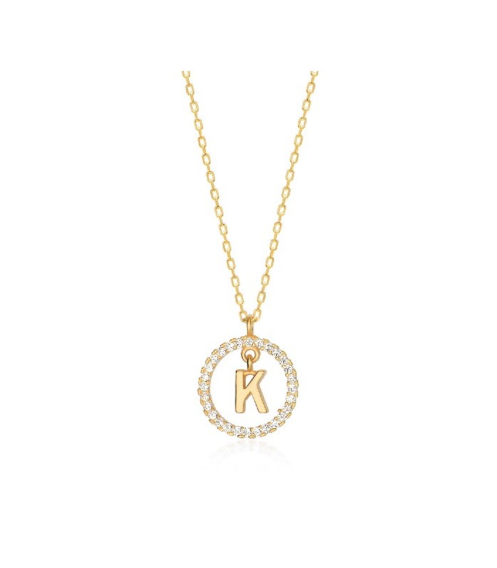 Collar en plata de ley con baño de oro de 18k de 40cm ampliable hasta 47cm con colgante circulo con circonitas y en el interior inicial de plata