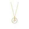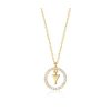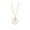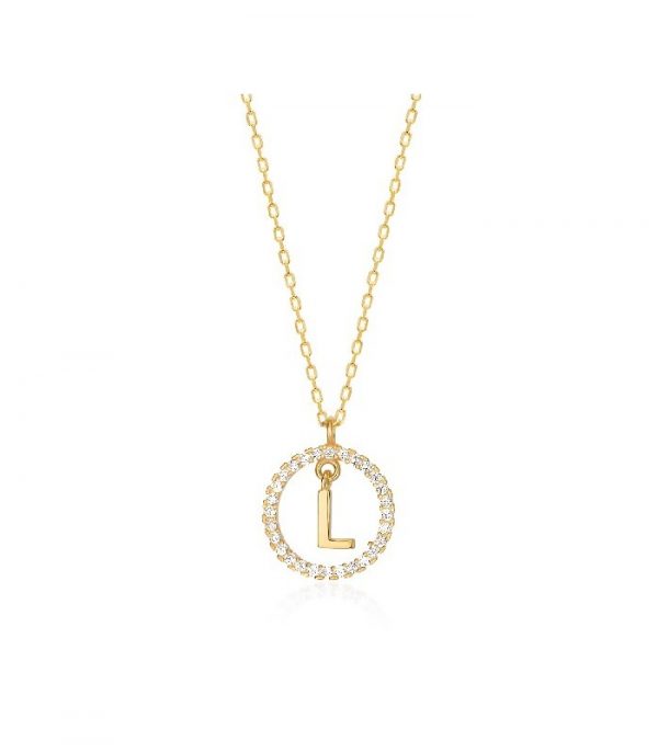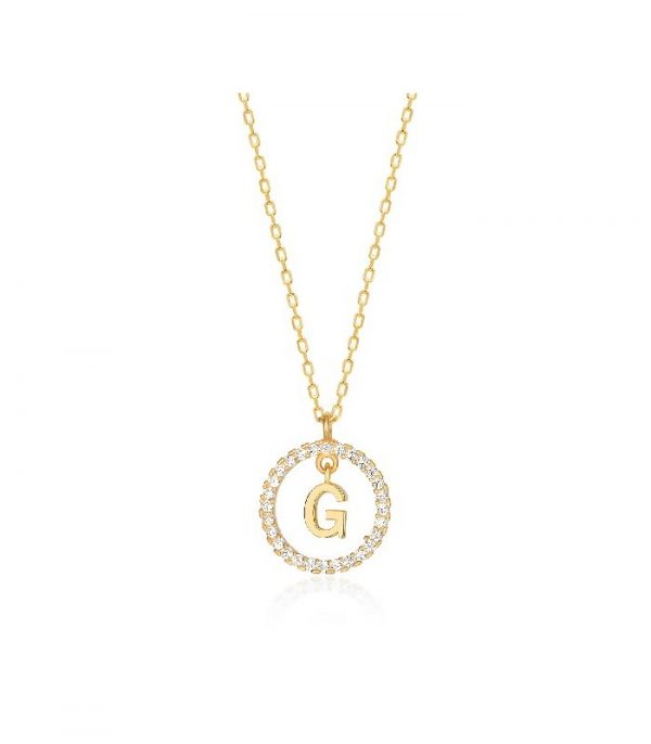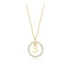 Colgante circulo con 28 circonitas brillantes transparentes e inicialen plata