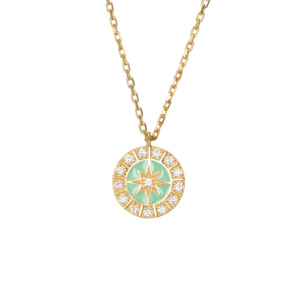 Collar en plata de ley cadena de 38cm ajustable hasta 44cm y colgante medalla con Estrella, circonitas y esmalte