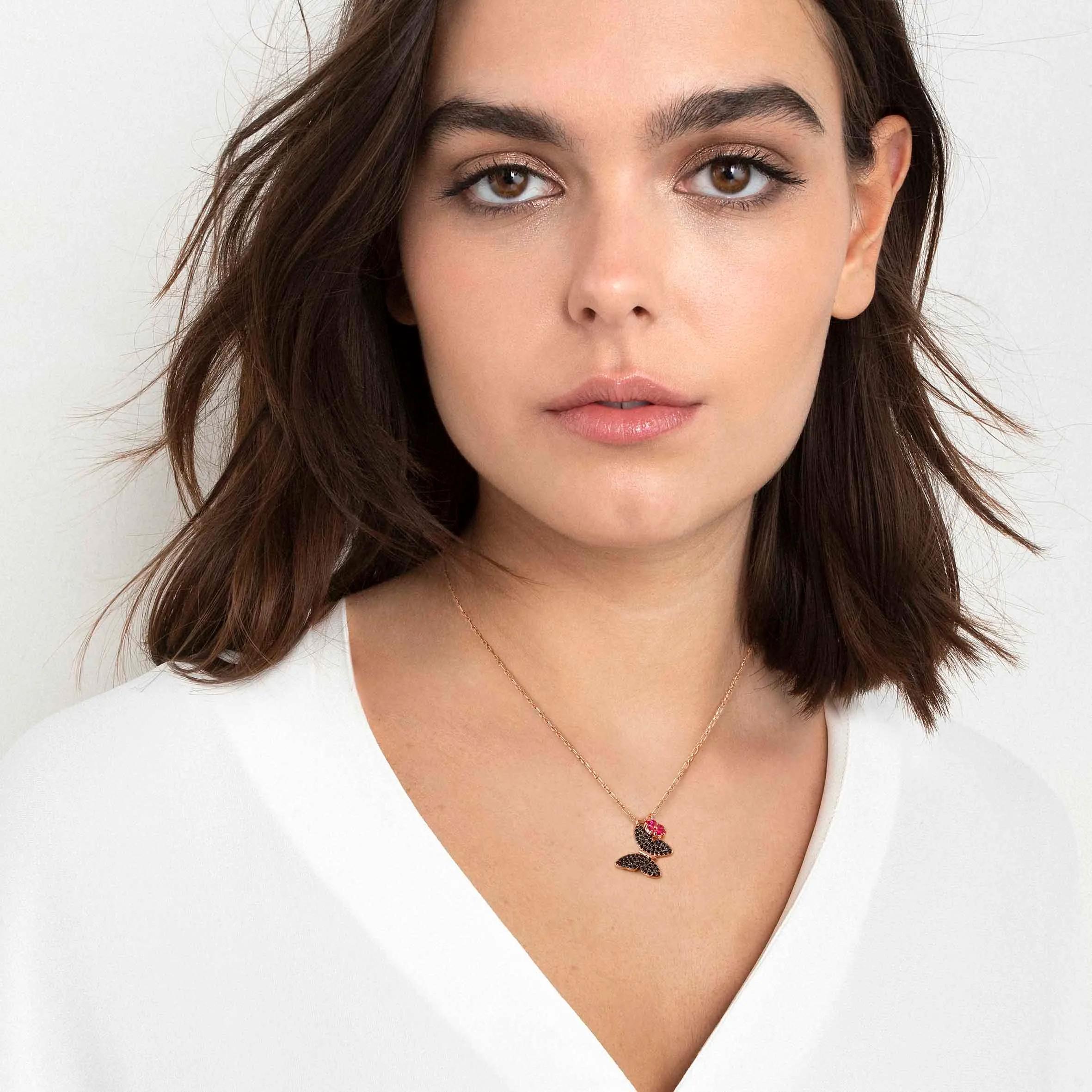 Collar en Plata 925 con baño de oro rosa y zirconita cubica negra y roja