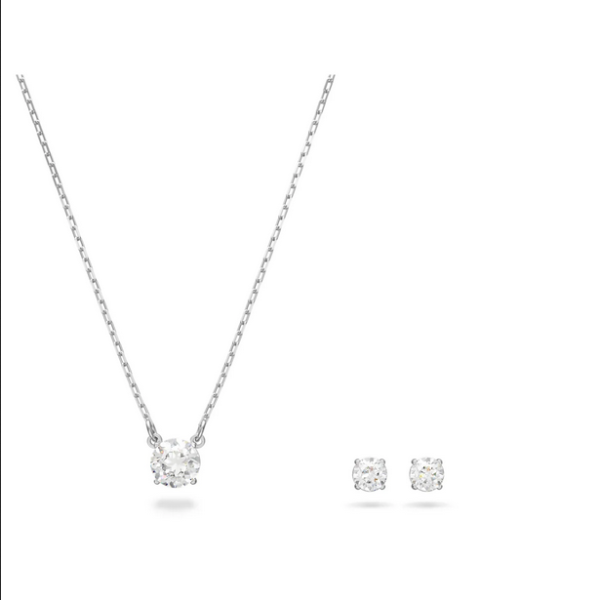 El perfecto regalo romántico, además de todo un clásico inmune al paso del tiempo. El conjunto Attract redondo incluye un colgante con cadena con baño de rodio y un par de pendientes. Cada pieza incluye un chatón circular que le confiere un brillo radiante y atemporal.
