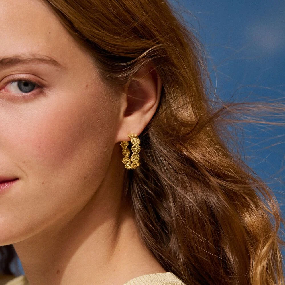 Criollas acabadas en oro en forma de margaritas. Una opción súper primaveral que querrás lucir a todas horas.