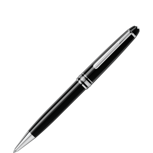 El esferógrafo lujoso Meisterstück Classique se convierte en un icono exclusivo del diseño. El capuchón y el depósito están elaborados en resina preciosa negra con el emblema Montblanc blanco incrustado. Tres Anillos platinados con la marca Montblanc repujada y un clip platinado con número de serie individual realzan el diseño atemporal de este esferógrafo lujoso.