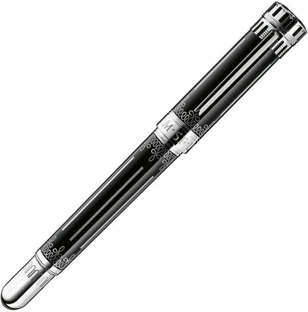 El diseño del extremo del capuchón y del cono de la Edición Limitada Ludovico Sforza 4810 está inspirado en la imponente arquitectura del Castillo Sforzesco. Los ornamentos de la pintura mural al fresco creada por Leonardo en la «Sala delle Asse» del castillo milanés decoran el brillante lacado negro del artículo de escritura. Con su grabado, el anillo del capuchón hace recordar una «Testone», una moneda de plata del Renacimiento italiano acuñada en honor a Ludovico Sforza. Las incrustaciones en plata 925 (4810) ponen el broche final a esta fascinante Edición Limitada en homenaje a Ludovico Sforza. El escudo de los Sforza ha servido como inspiración para los grabados de los plumines de oro de 750.