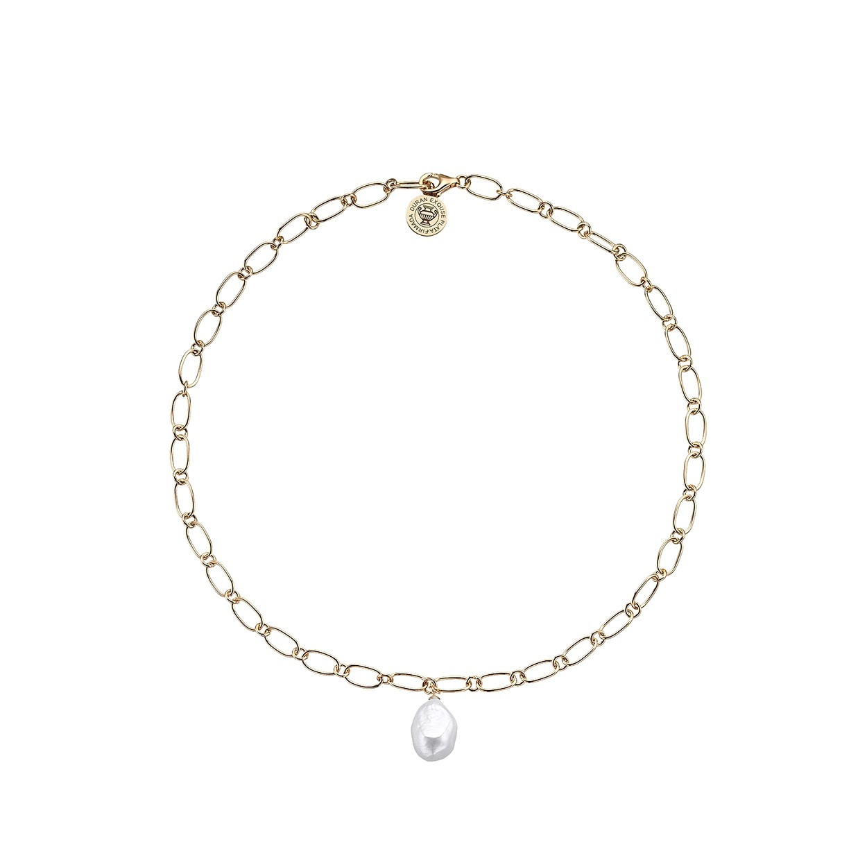 Gargantilla Durán Exquse de la colección CoCo con cadena de eslabones combinados y perla barroca realizado en plata 925 bañado en oro amarillo de 40 + 3 cm