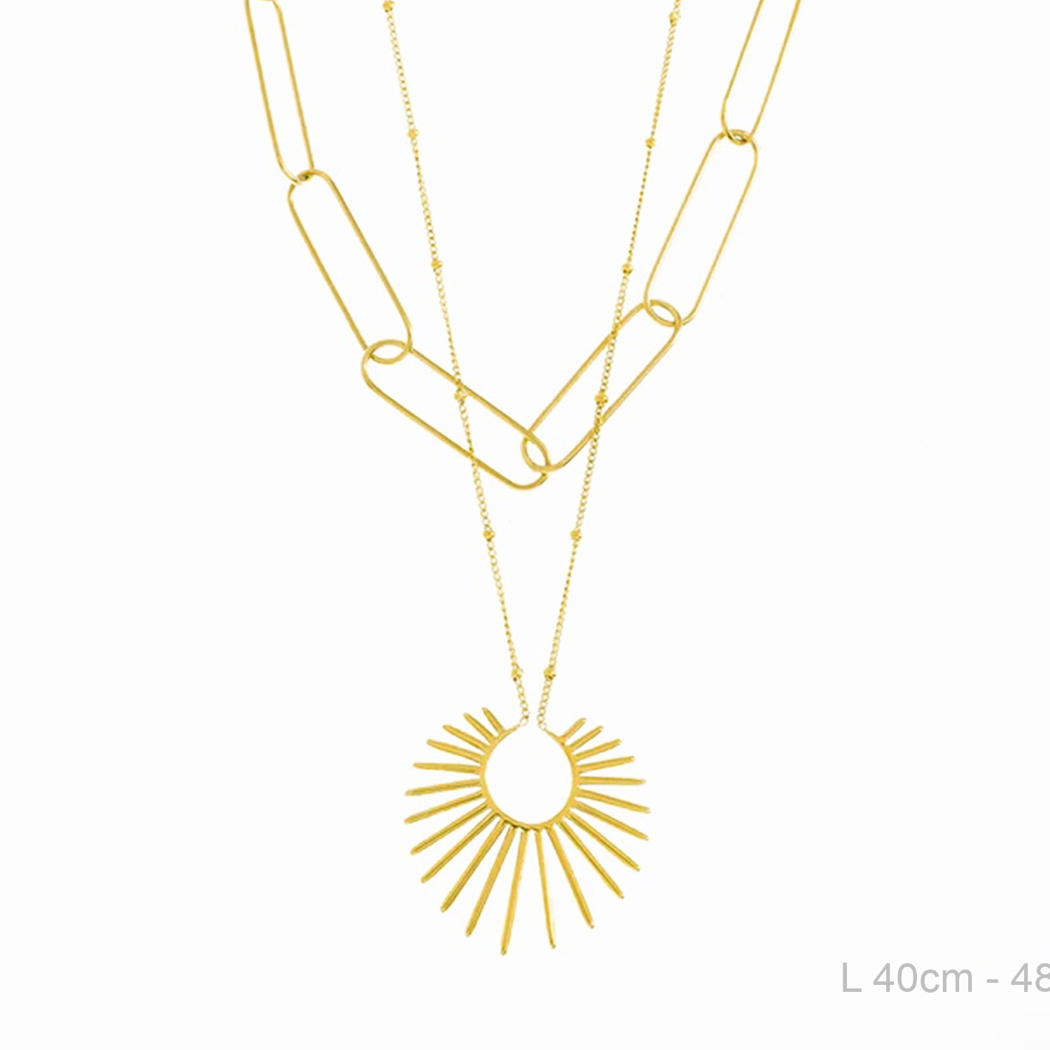 Gargantilla Doble cadena en acero diferentes formas y colgante sol