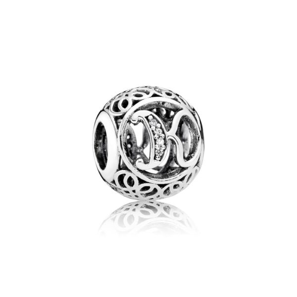 Charm PANDORA Vintage letra en plata de primera ley, adornado con circonitas transparentes. Desarrola tu creatividad y elige tus propias iniciales, las de tus hijos o deletrea una palabra que tiene un significado especial para tí.