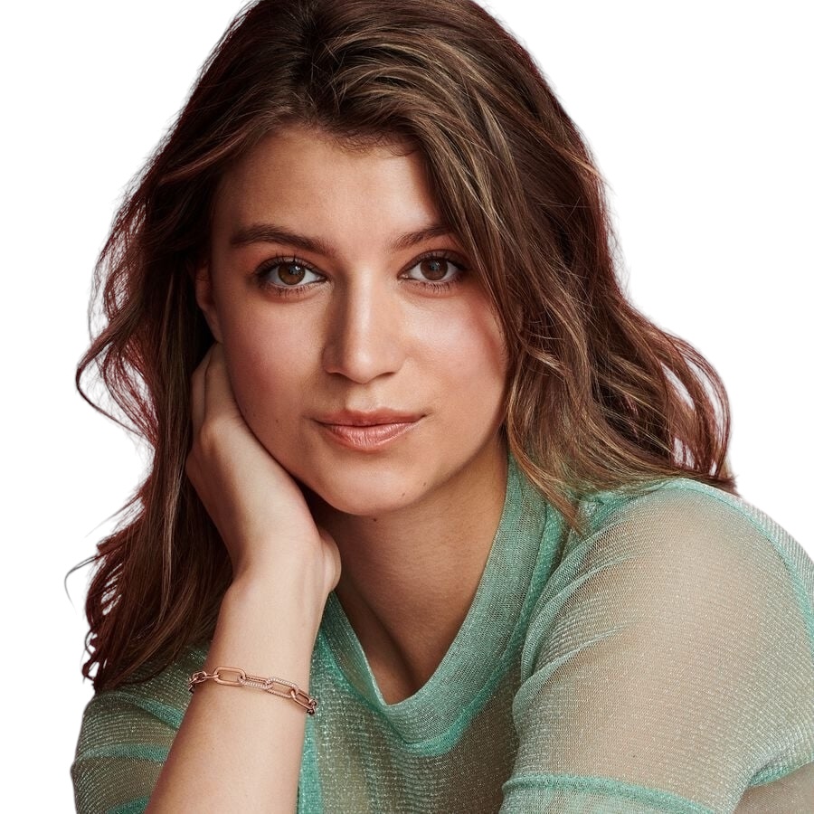 Eleva el tono de brillos de tus cadenas de eslabones con este Link Doble en Pavé de Pandora ME. Acabada a mano con recubrimiento de oro rosa de segunda ley de 14k, esta pieza se presenta con dos links entrelazados embellecidos con dos filas de circonitas cúbicas transparentes con talla brillante redonda. Lleva el tuyo entre conectores decorativos en tus collares o pulseras de cadena de links de Pandora ME o cuélgalo en unos pendientes de aro para hacer una declaración de estilo única. Consejo de estilo: la longitud de un link doble es la misma que la de dos links normales, cuatro eslabones entrelazados pequeños o un link decorativo, lo que te facilita la personalización. *Recuerda: Las joyas de Pandora ME solo son compatibles con la colección Pandora ME.