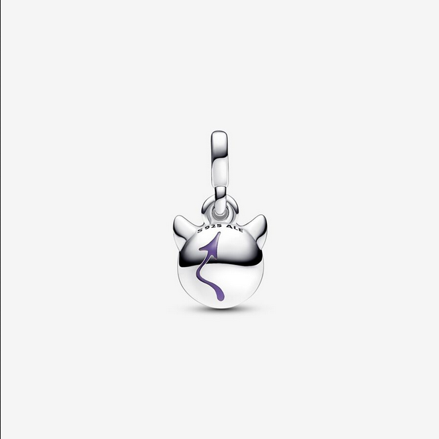 Tamaño miniatura, máximo impacto. Nuestro Mini Colgante Pequeño Demonio Pandora ME se inspira en el mundo de los emojis. Fabricado a mano en plata de primera ley, el mini colgante se presenta con dos cristales sintéticos de color morado con talla brillante en los ojos, mientras que su característica actitud descarada remata la expresión facial. La parte trasera del colgante se ha decorado con esmalte en la cola y los característicos cuernos del diablo, que aportan un toque divertido. Este mini colgante se ha diseñado para llevarlo en los conectores que se pueden abrir de Pandora ME. Lleva el tuyo en tus pendientes y anillos de Pandora ME y transporta tus emojis de tu teléfono a tu look diario. *Recuerda que los Mini Colgantes de Pandora ME, solo son compatibles con las joyas de Pandora ME.